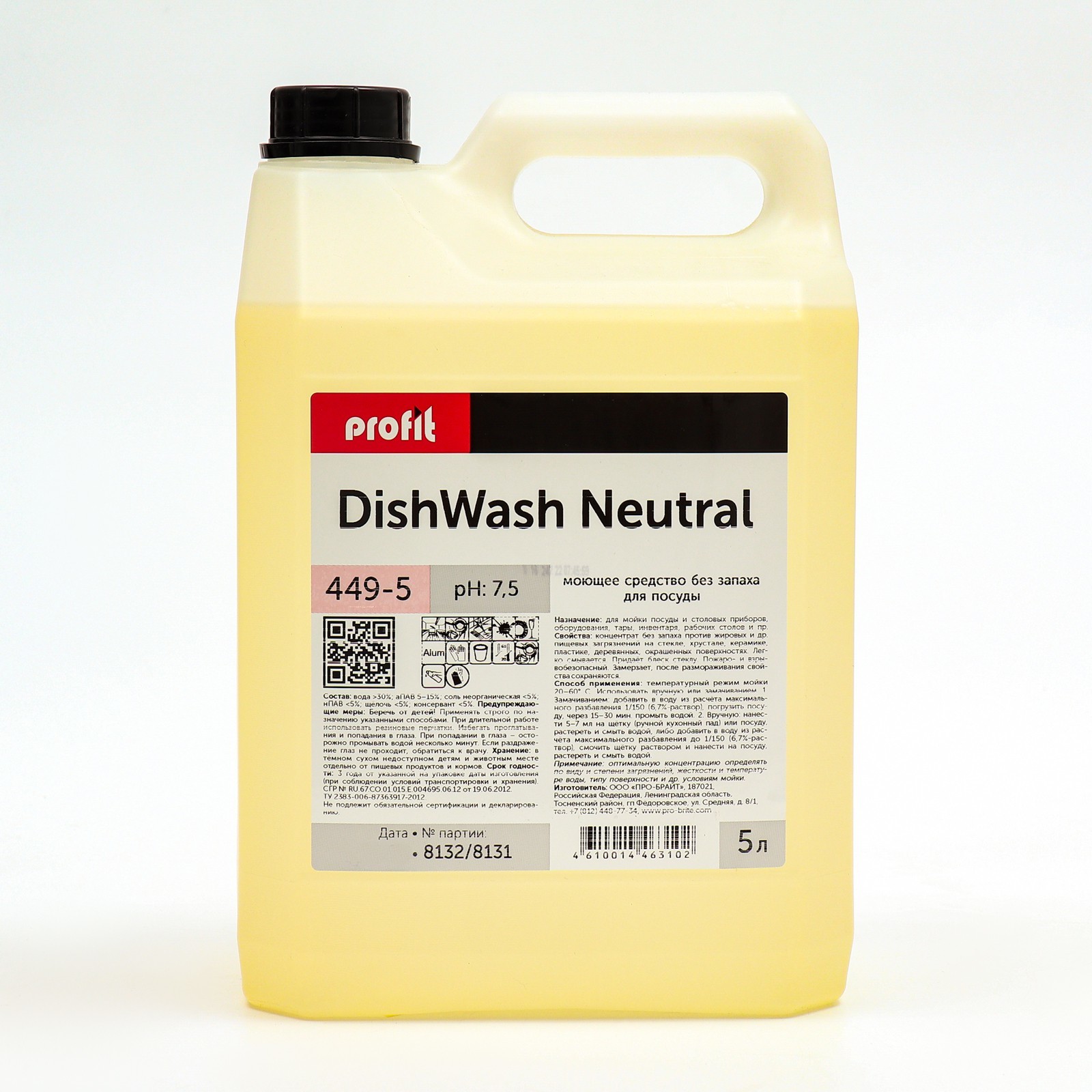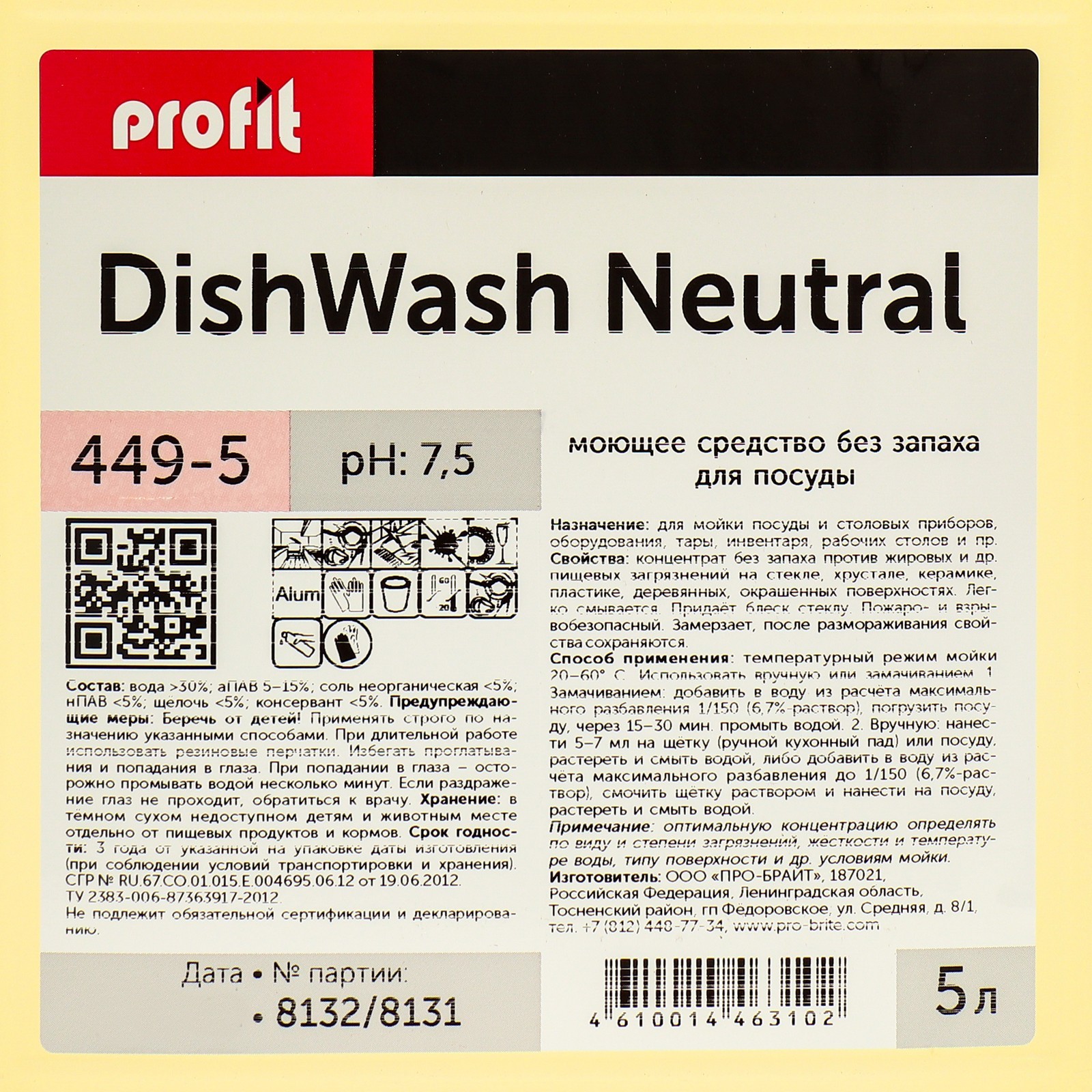Средство для мытья посуды profit dishwash neutra без запаха, 5 л.