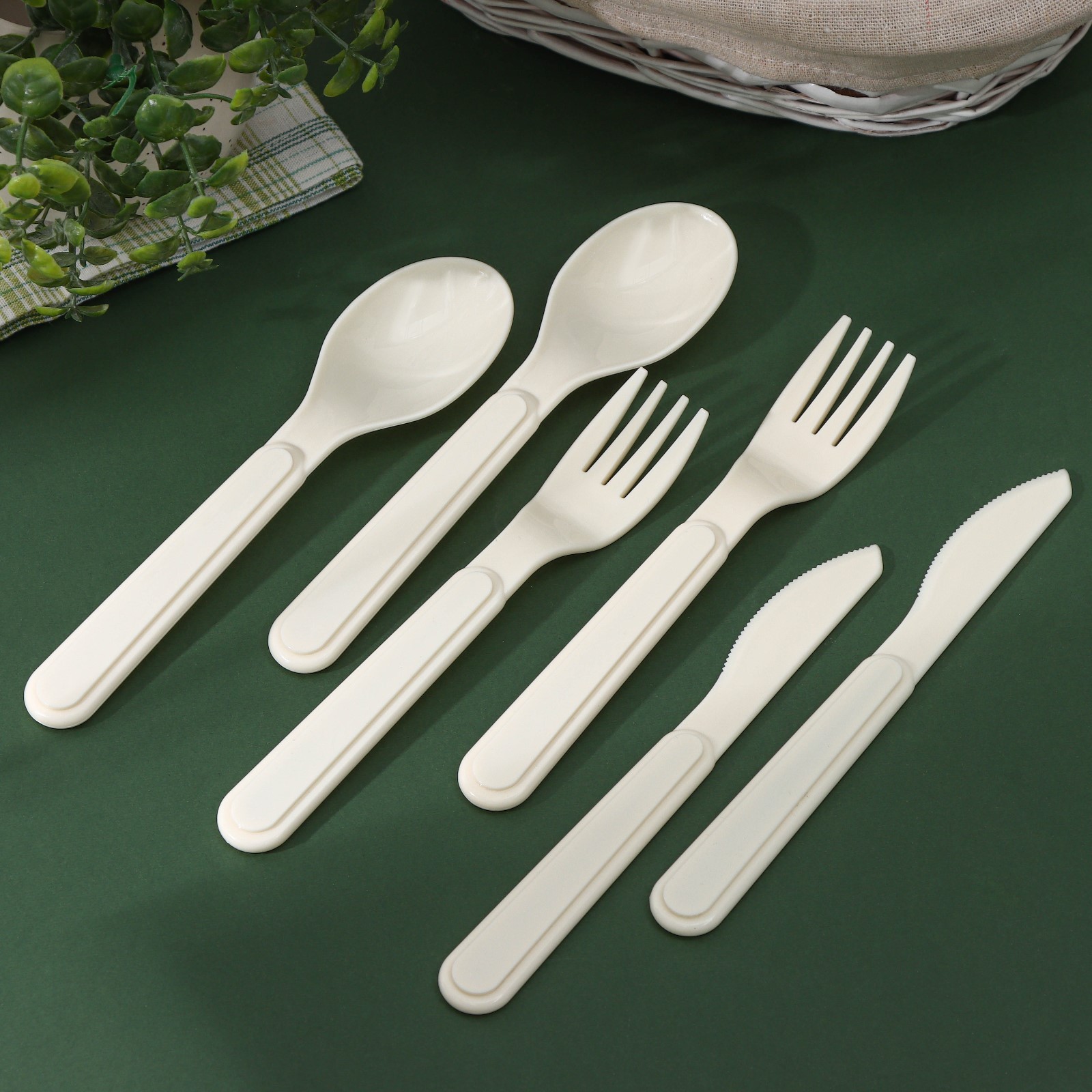 Набор столовых приборов на 2 персоны, 6 предметов: 2 вилки, 2 ложки, 2 ножа, цвет бежевый