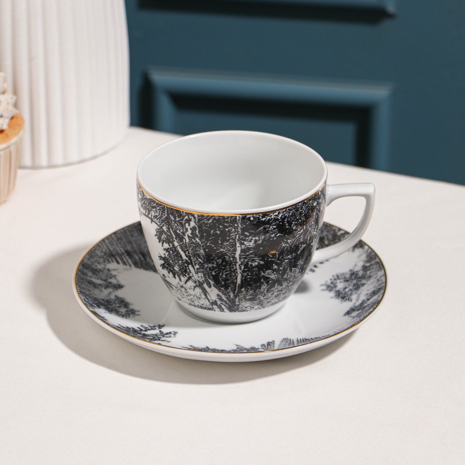 Чайная пара «пейзаж», 250 мл, фарфор