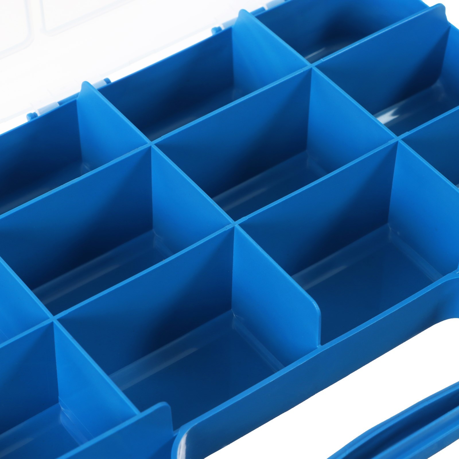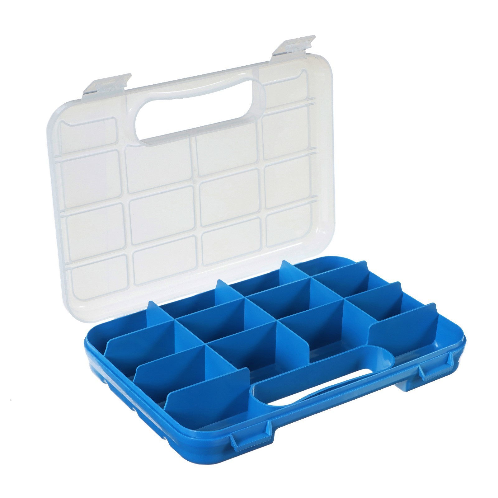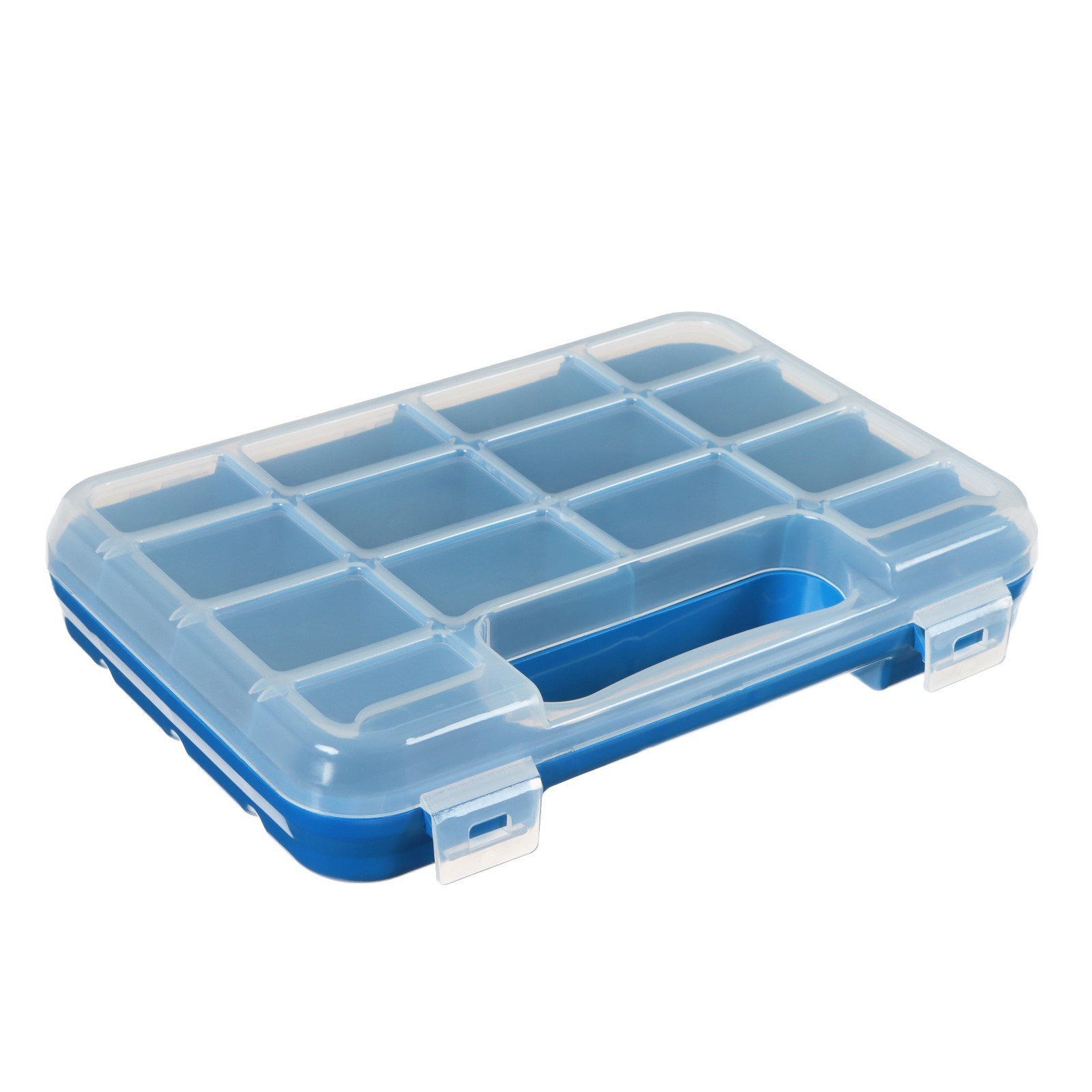 Коробка для рыболовных мелочей к-14, пластмасса, 23.5 х 16 х 4.5 см, синяя. Используется для хранения и транспортировки таких вещей как: материалов для создания украшений (бисер, бусины, фурнитура), рыболовных снастей (грузики, крючки), ручных инструментов и других мелких деталей. Количество отделений: 1 Количество ячеек: 14 Материал: Пластик Температурное ограничение: Нет Съёмные перегородки: Нет Особенности: С ручкой Назначение: Для приманок  развернуть описание ▼