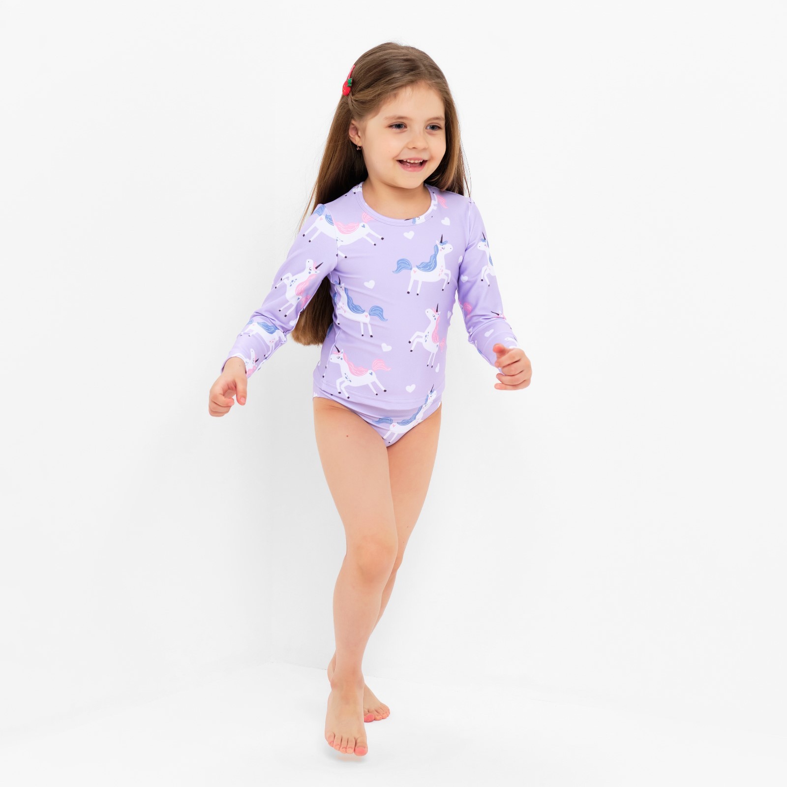 Купальник детский kaftan "единороги", рост 110-116 см, лиловый.
