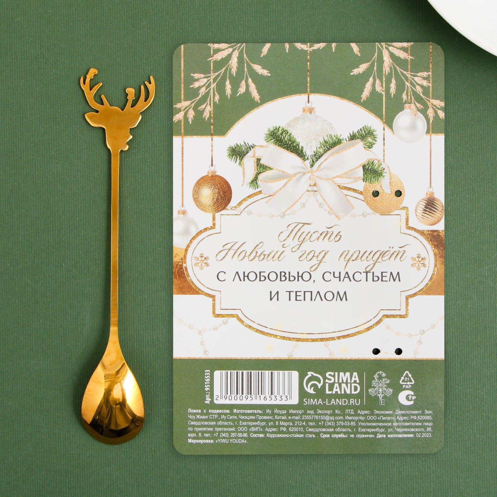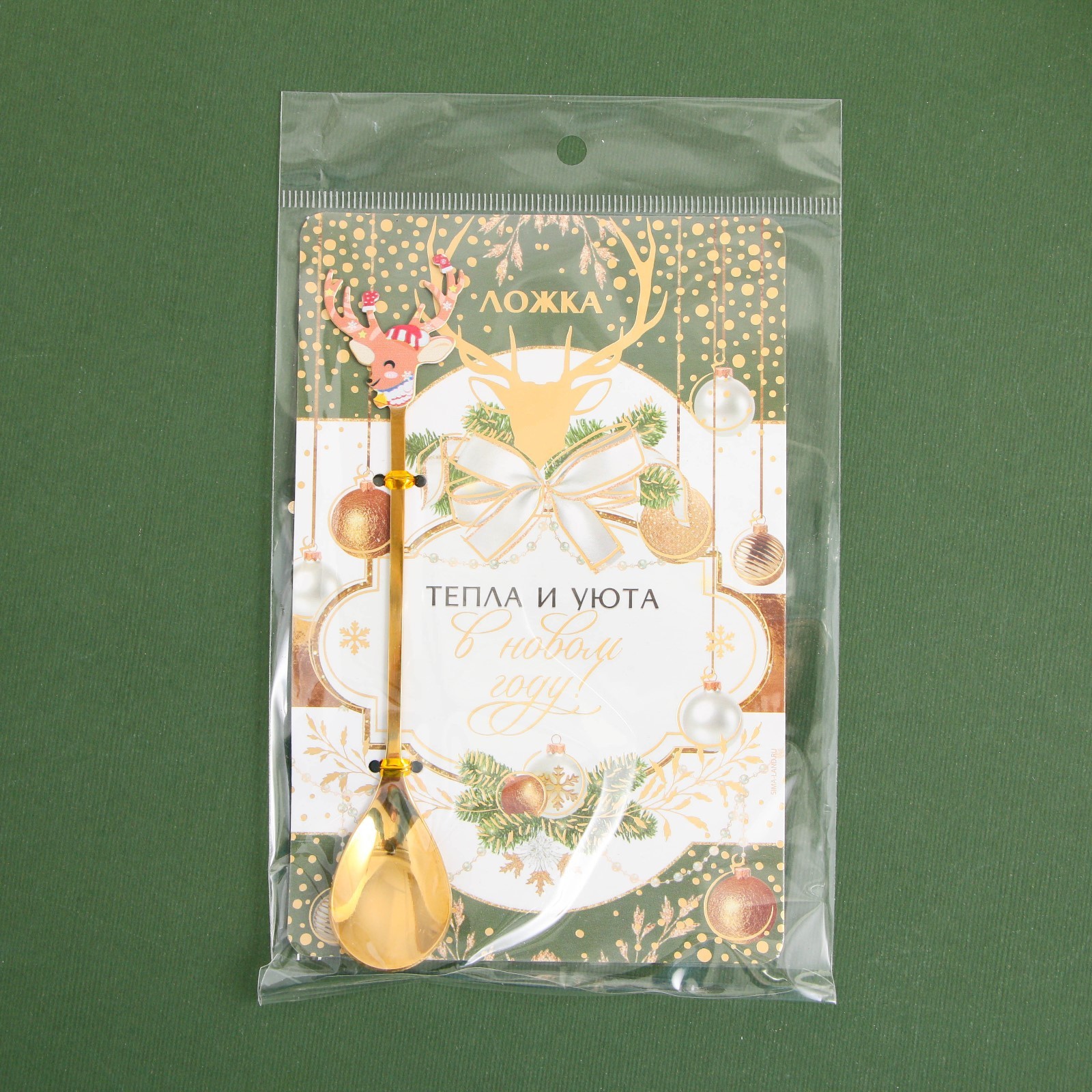 Ложка новогодняя с формовой ручкой «тепла и уюта в новом году!», нержавеющая сталь, 14,5 х 2,7 см