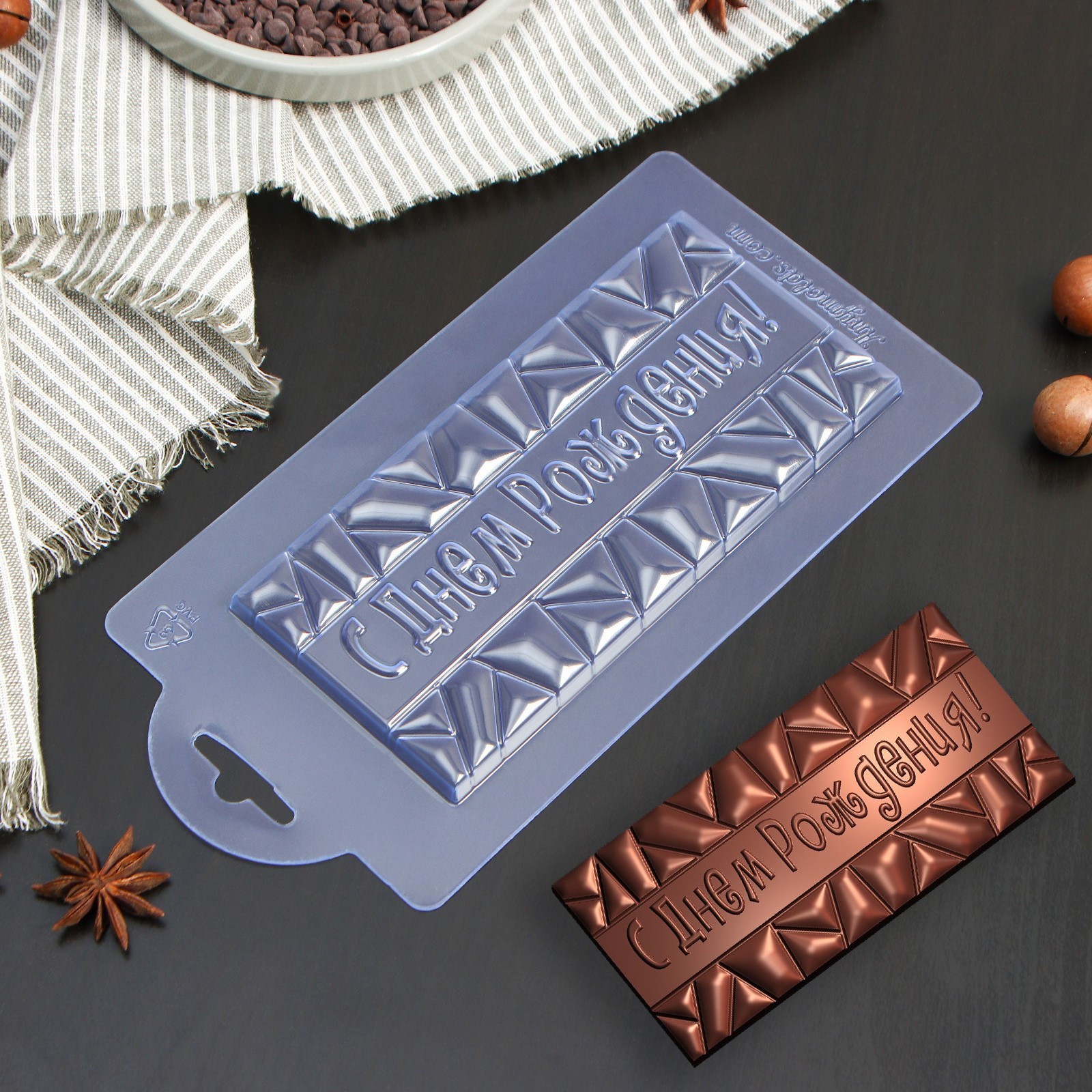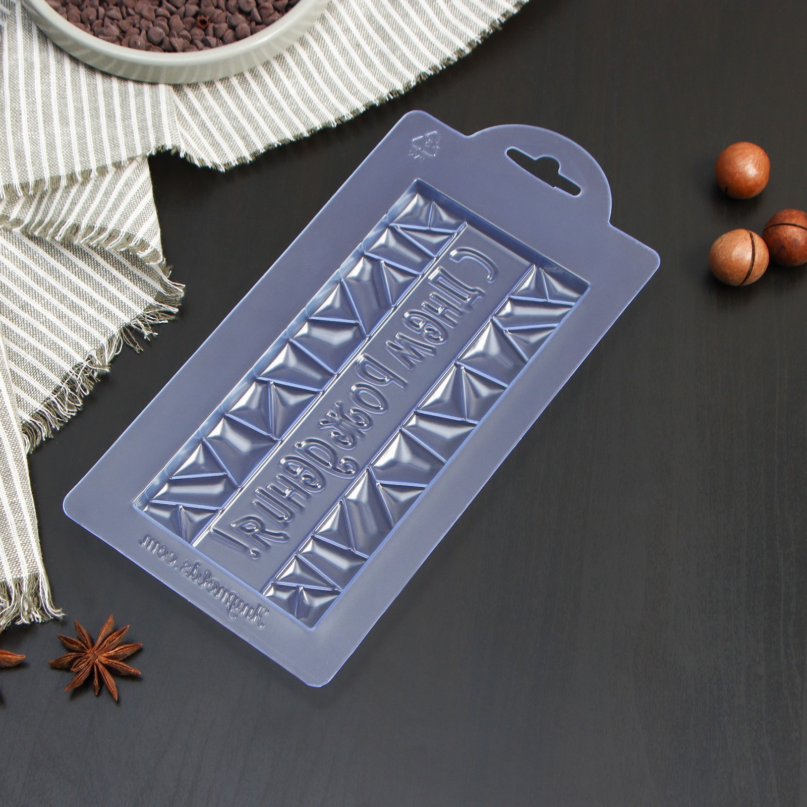 Форма для шоколада и конфет пластиковая «с днём рождения», плитка 17x8x1 см, цвет прозрачный