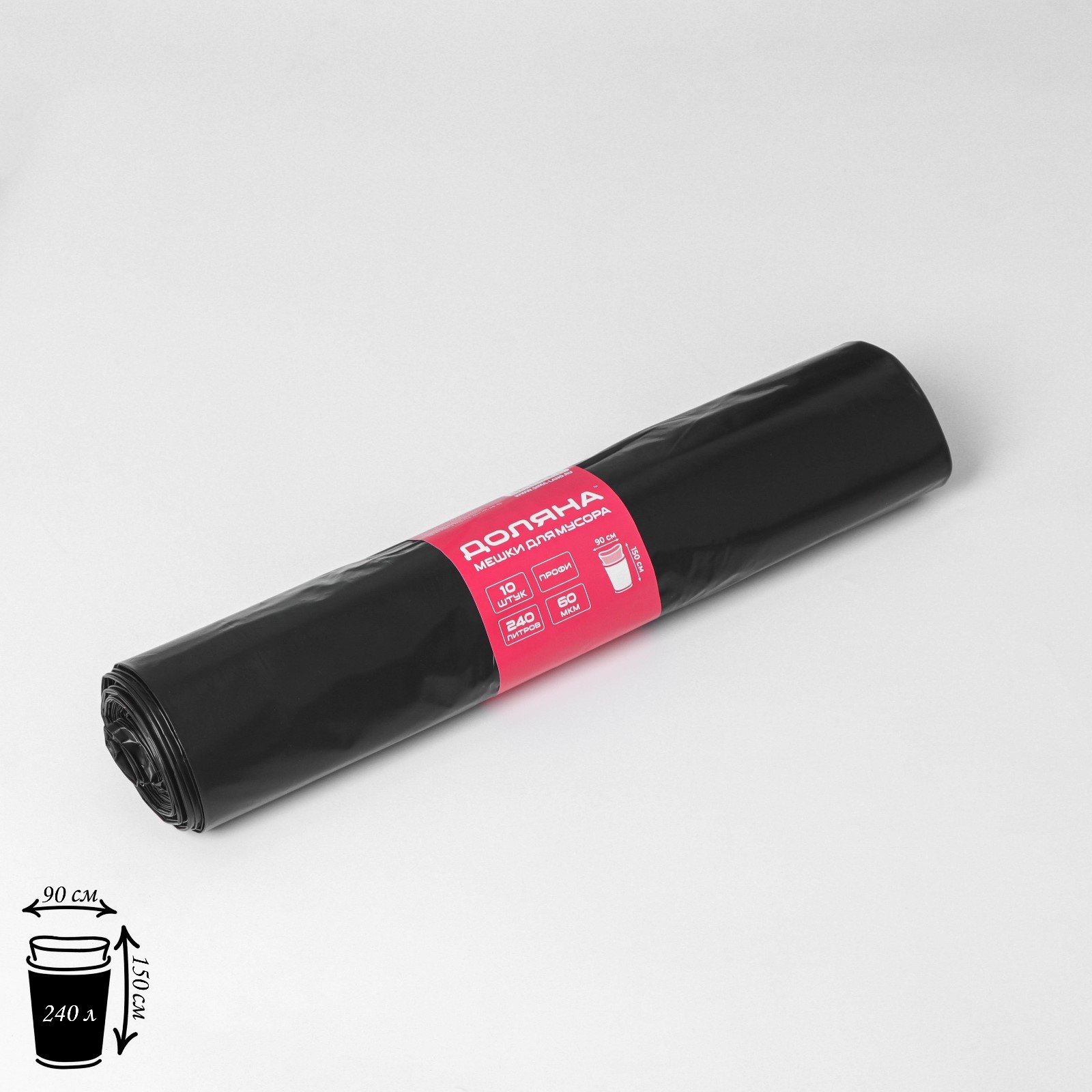 Мешки для мусора доляна «профи», 240 л, 90x150 см, 60 мкм, пвд, 10 шт, цвет чёрный