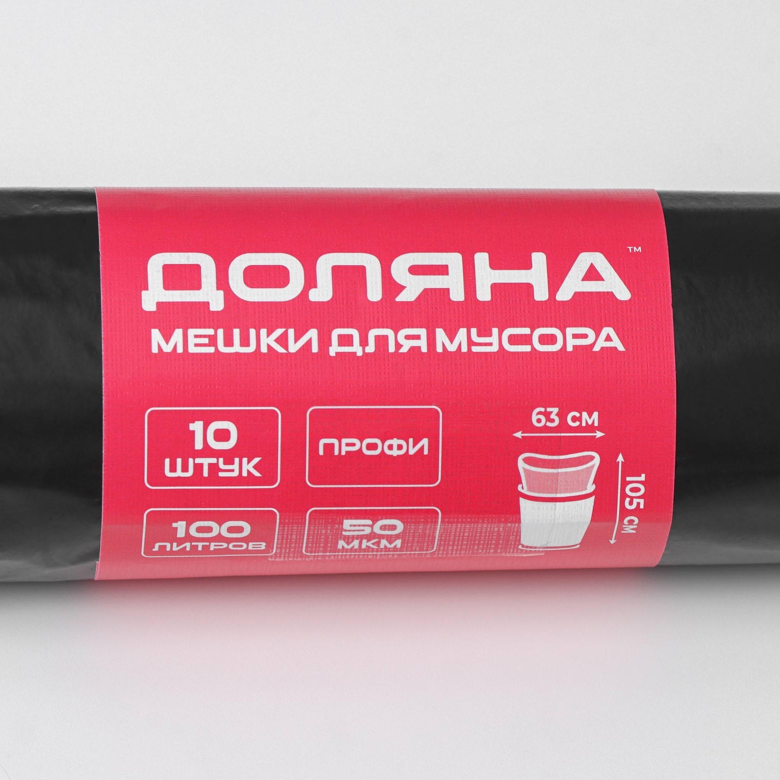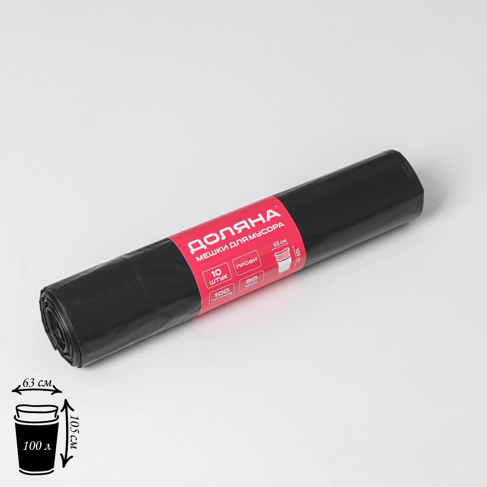 Мешки для мусора доляна «профи», 100 л, 63x105 см, 50 мкм, пвд, 10 шт, цвет чёрный