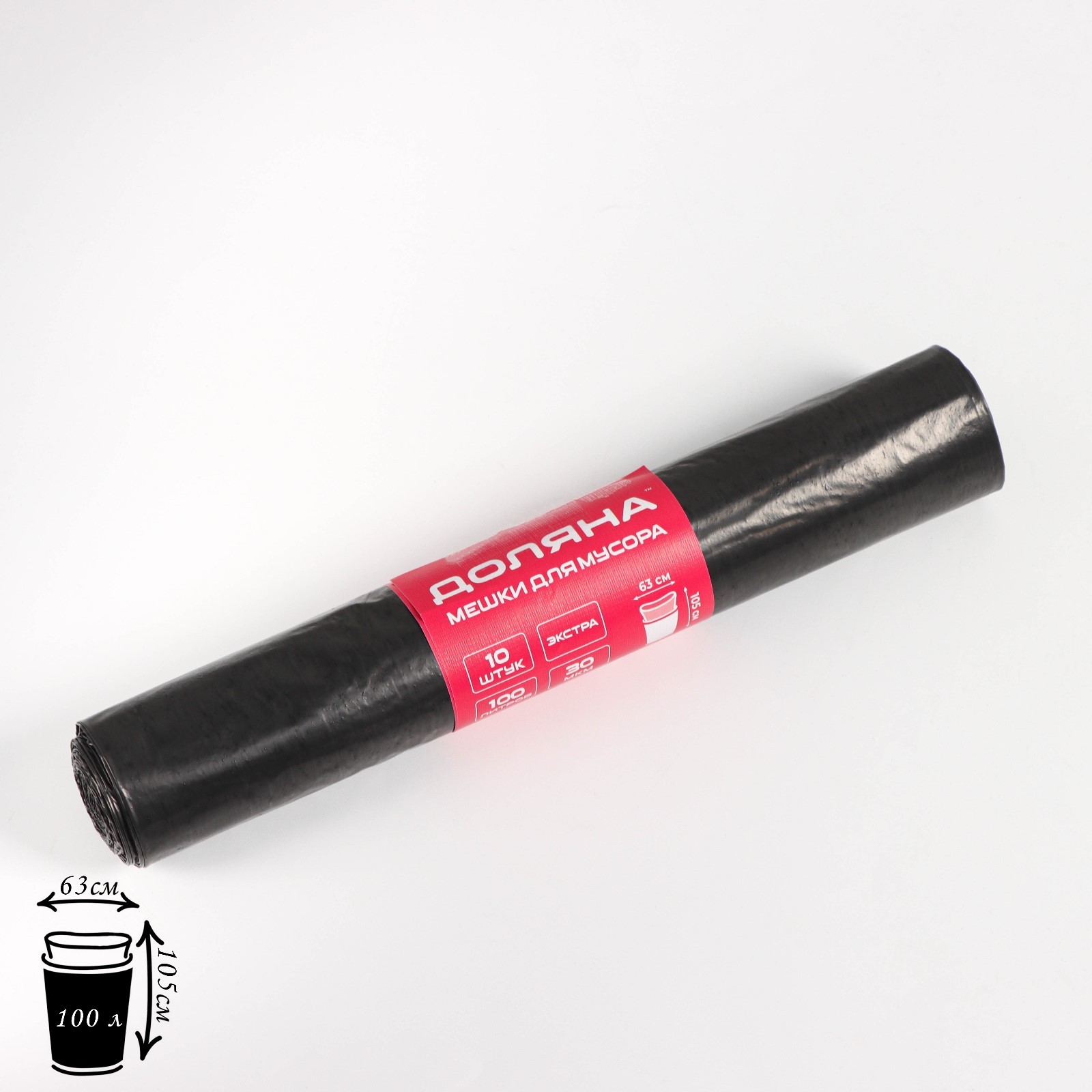 Мешки для мусора доляна «экстра», 100 л, 63x105 см, 30 мкм, пвд, 10 шт, цвет черный