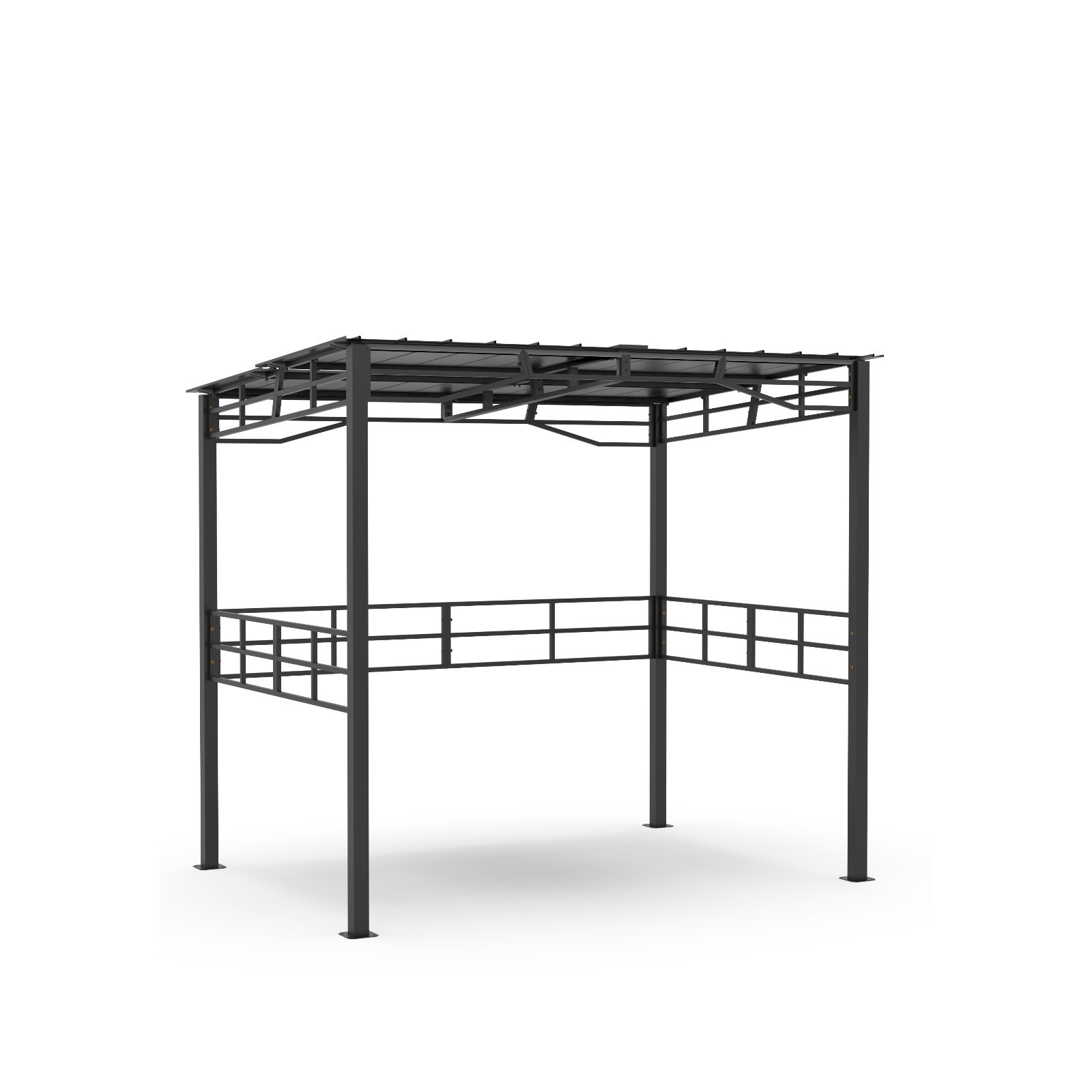 Павильон для гриля grillux storm, 239,5х169,7х217,5 см. Готовить ароматный шашлык, аппетитные колбаски, сочные стейки, рыбные или овощные блюда на углях можно в любую погоду. Тент для гриля «Rain» защитит деликатесы и кулинара от палящего солнца, дождя или снега. Сборная модель универсальна в применении. Под крышей поместится небольшая жаровня или масштабный агрегат с печкой, коптильней и барбекю. Габариты, мм: 2395 х 1697 х 2175. Трубы: 50 х 50мм, 20 х 20 мм. Цвет: чёрный. Материал: Сталь Вид: Навес Особенности: С навесом/крышей  развернуть описание ▼
