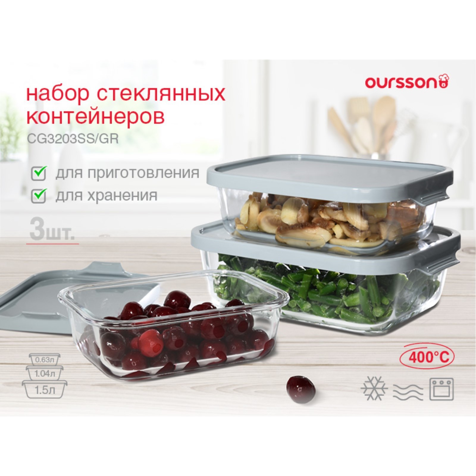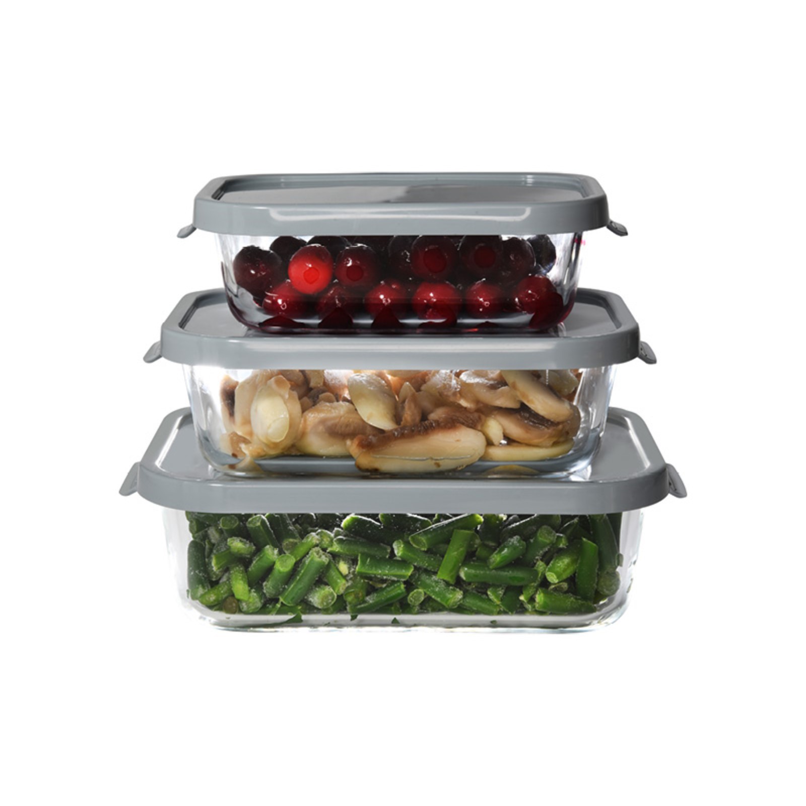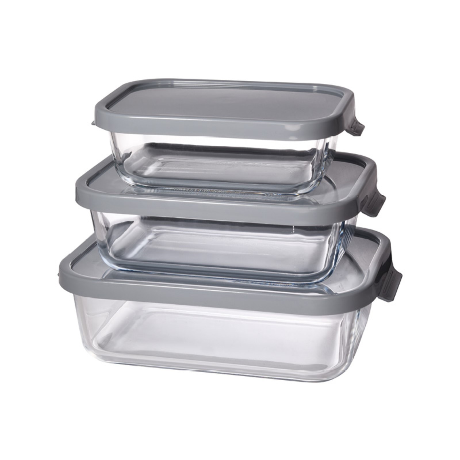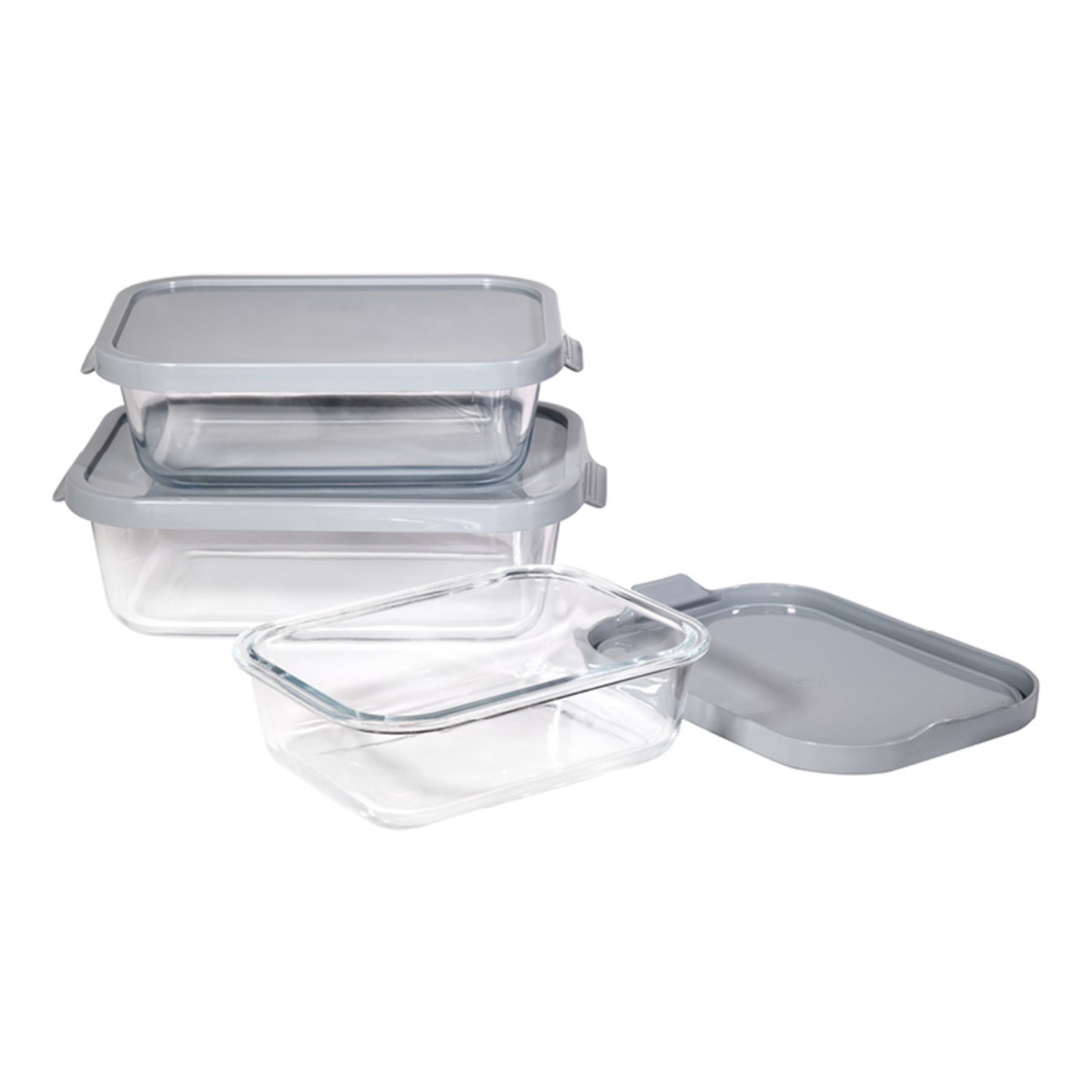 Набор стеклянных контейнеров, цвет серый, 3 шт.
