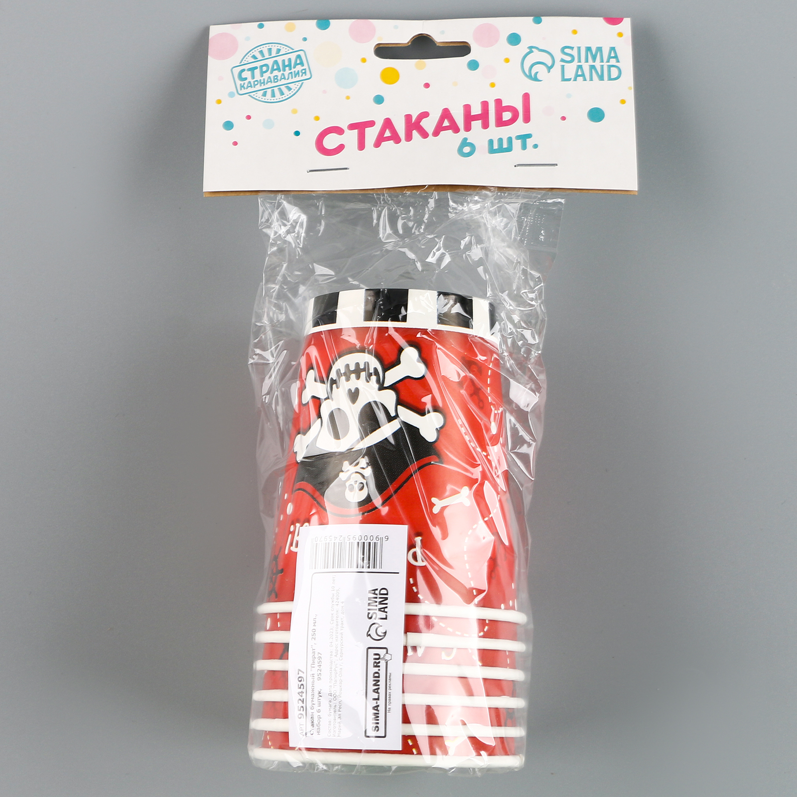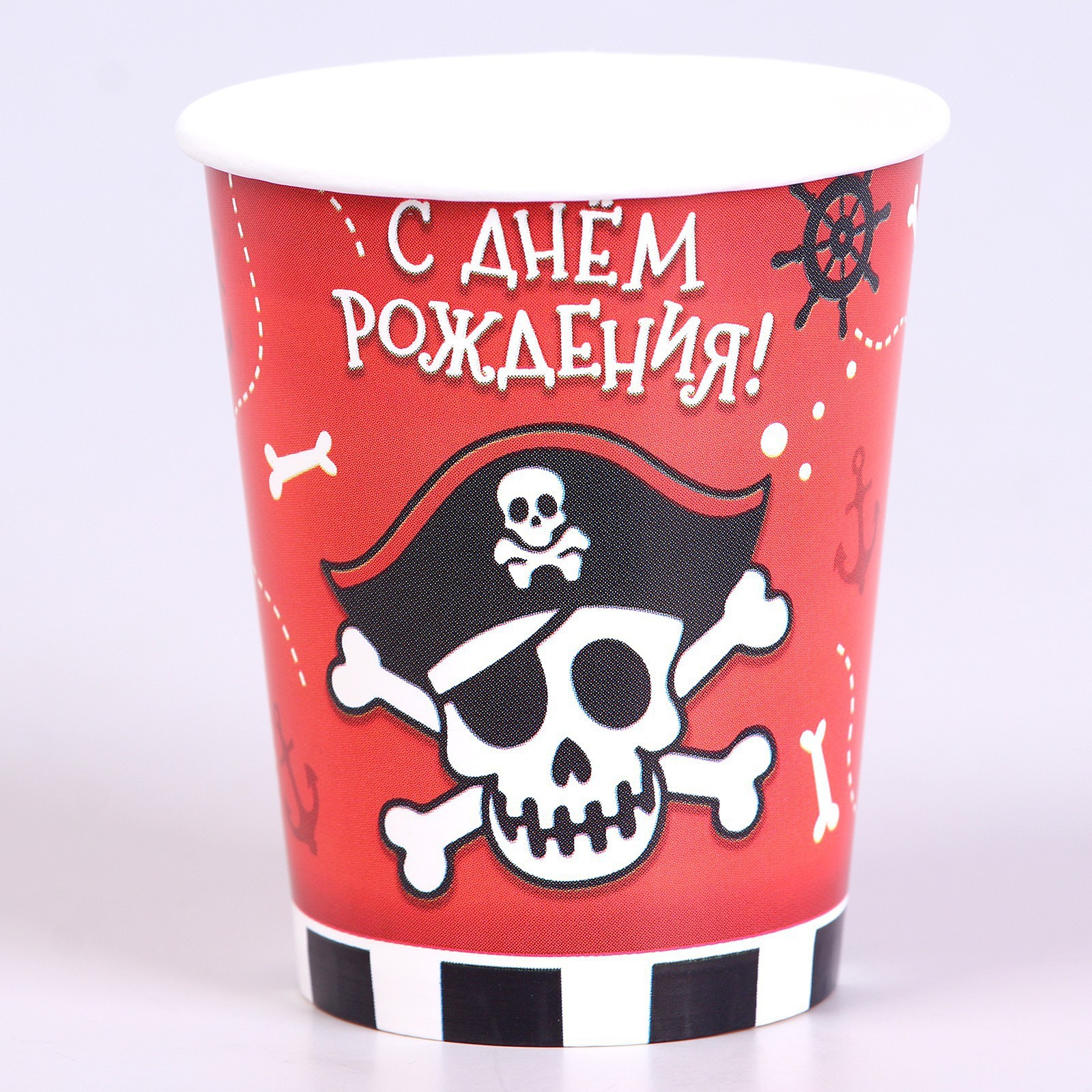 Стакан одноразовый бумажный "пират", 250 мл, набор 6 шт
