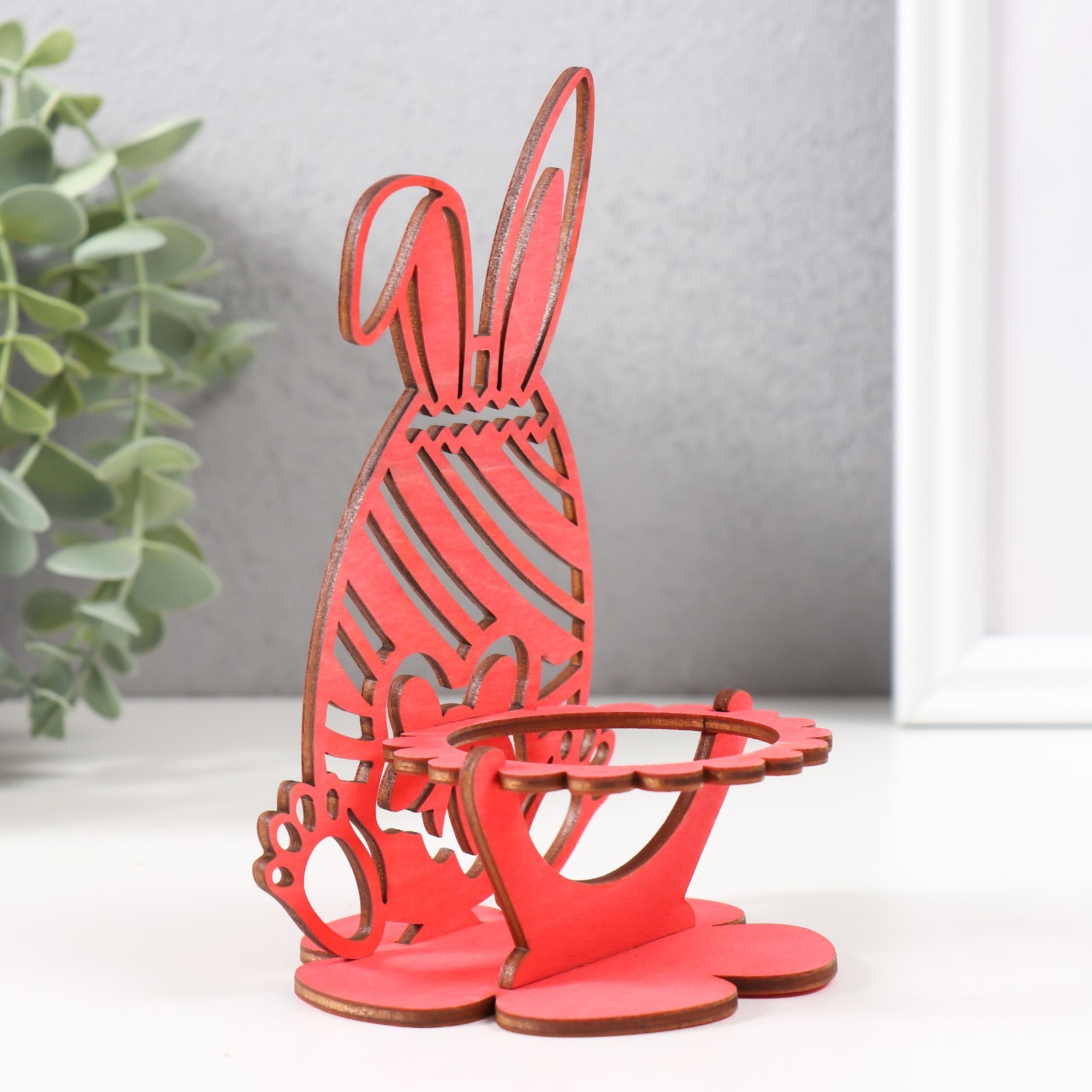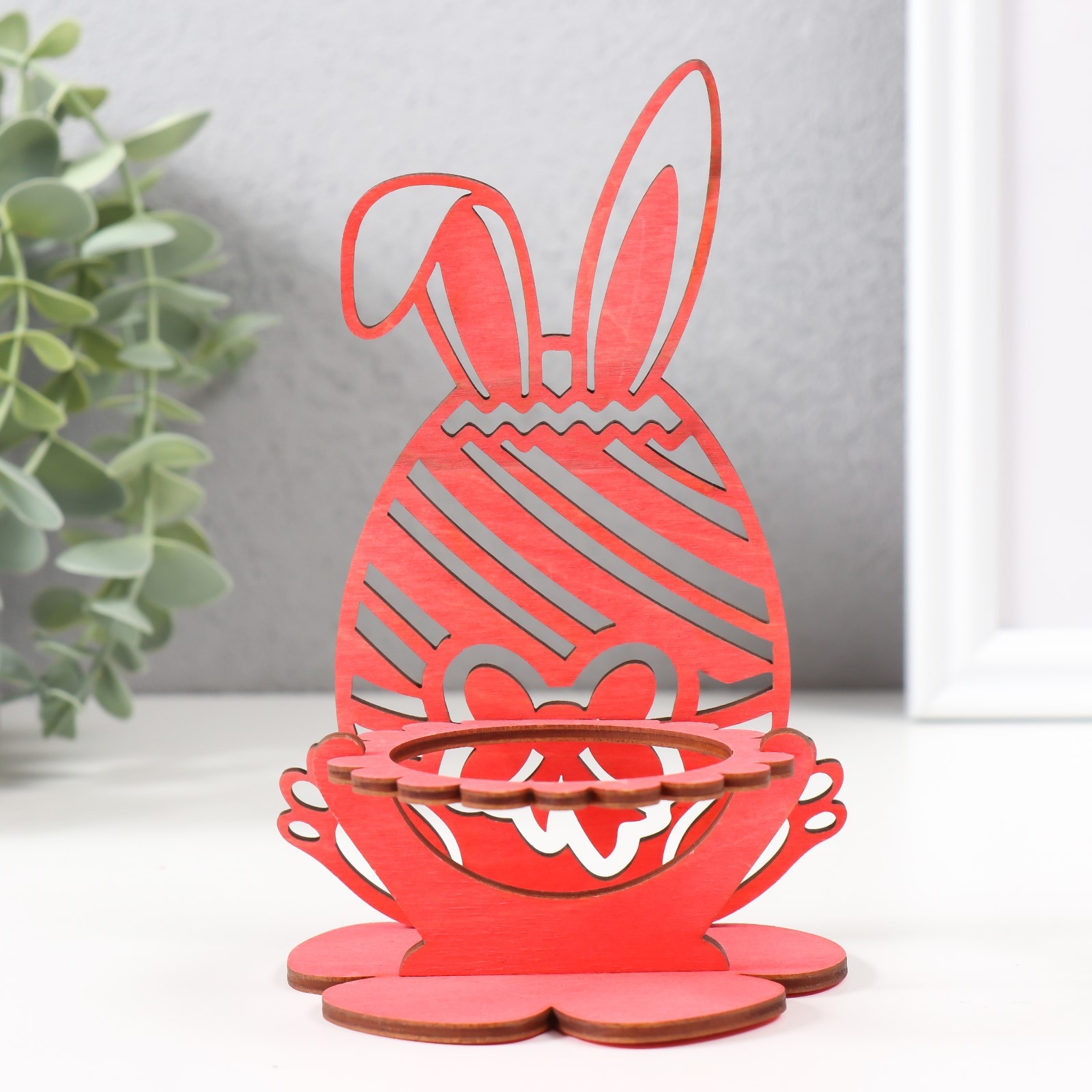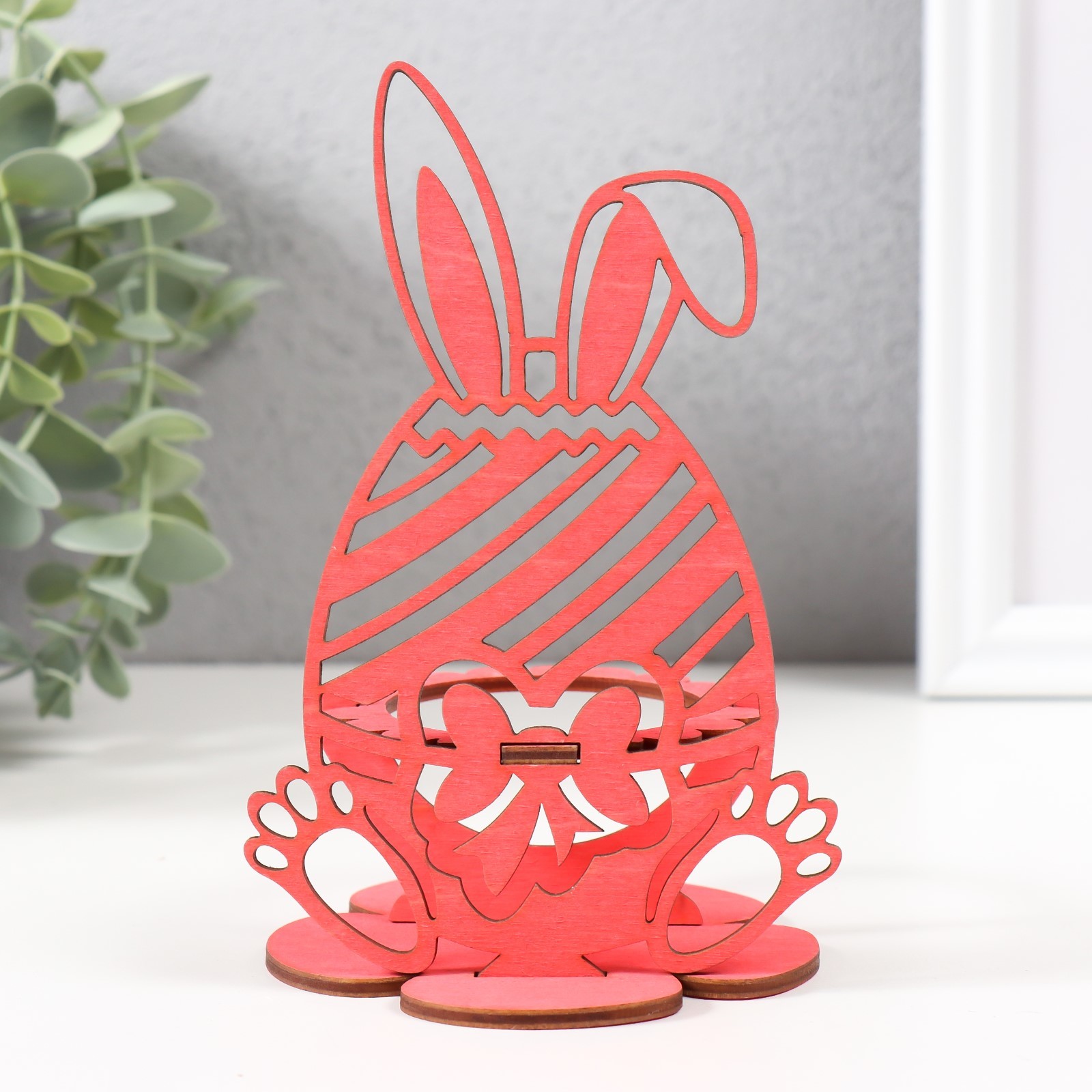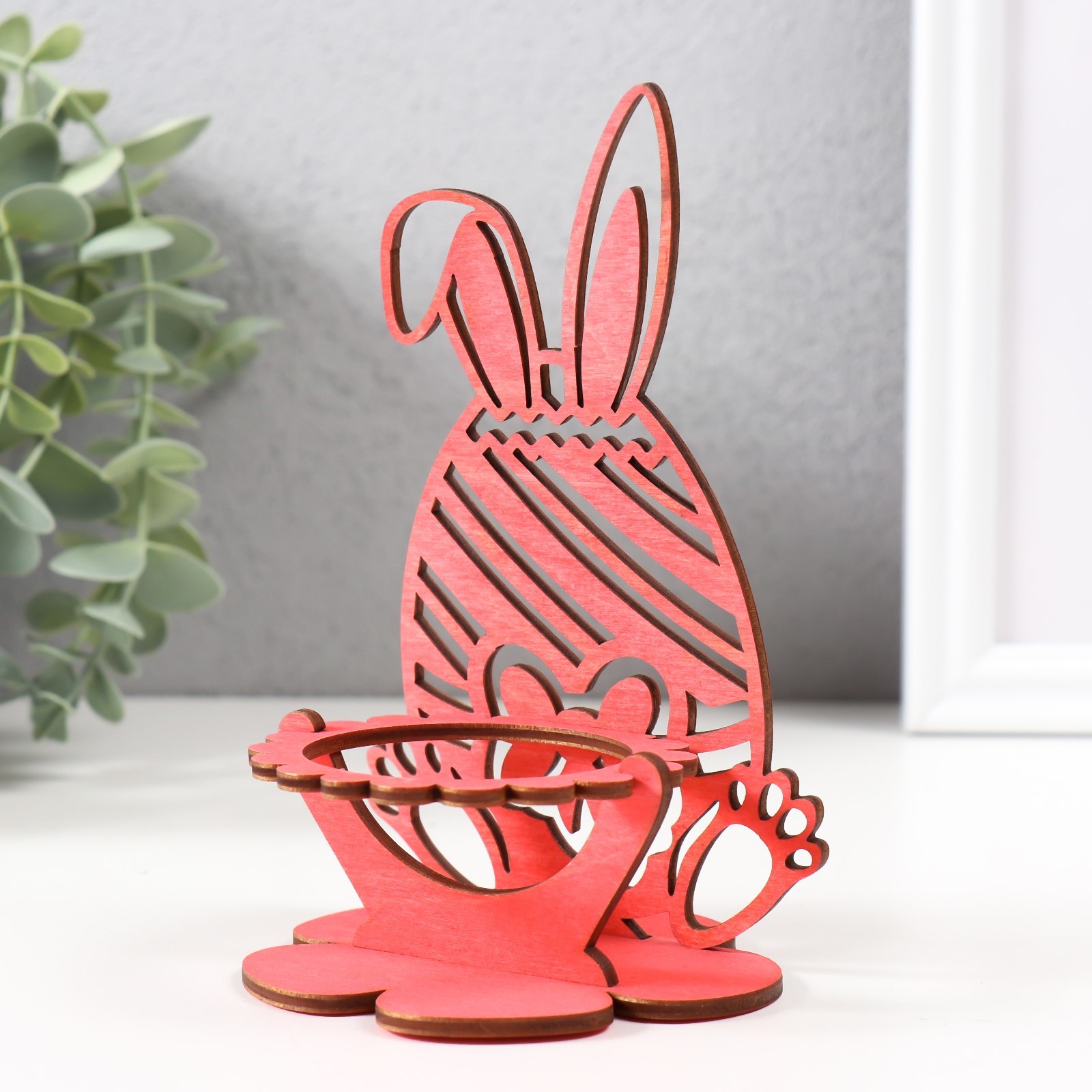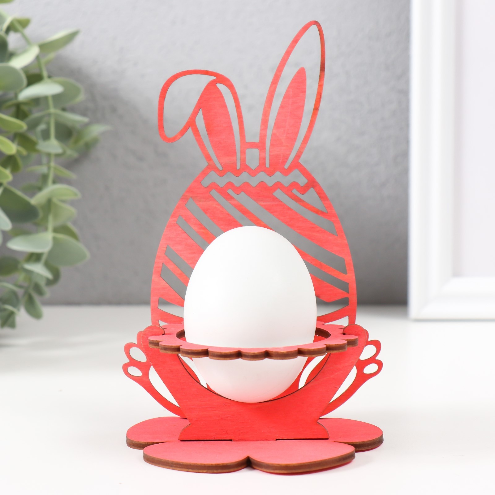 Подставка под яйцо "зайка" 8,5х8,5х14,5 см (набор 4 детали) коралловый