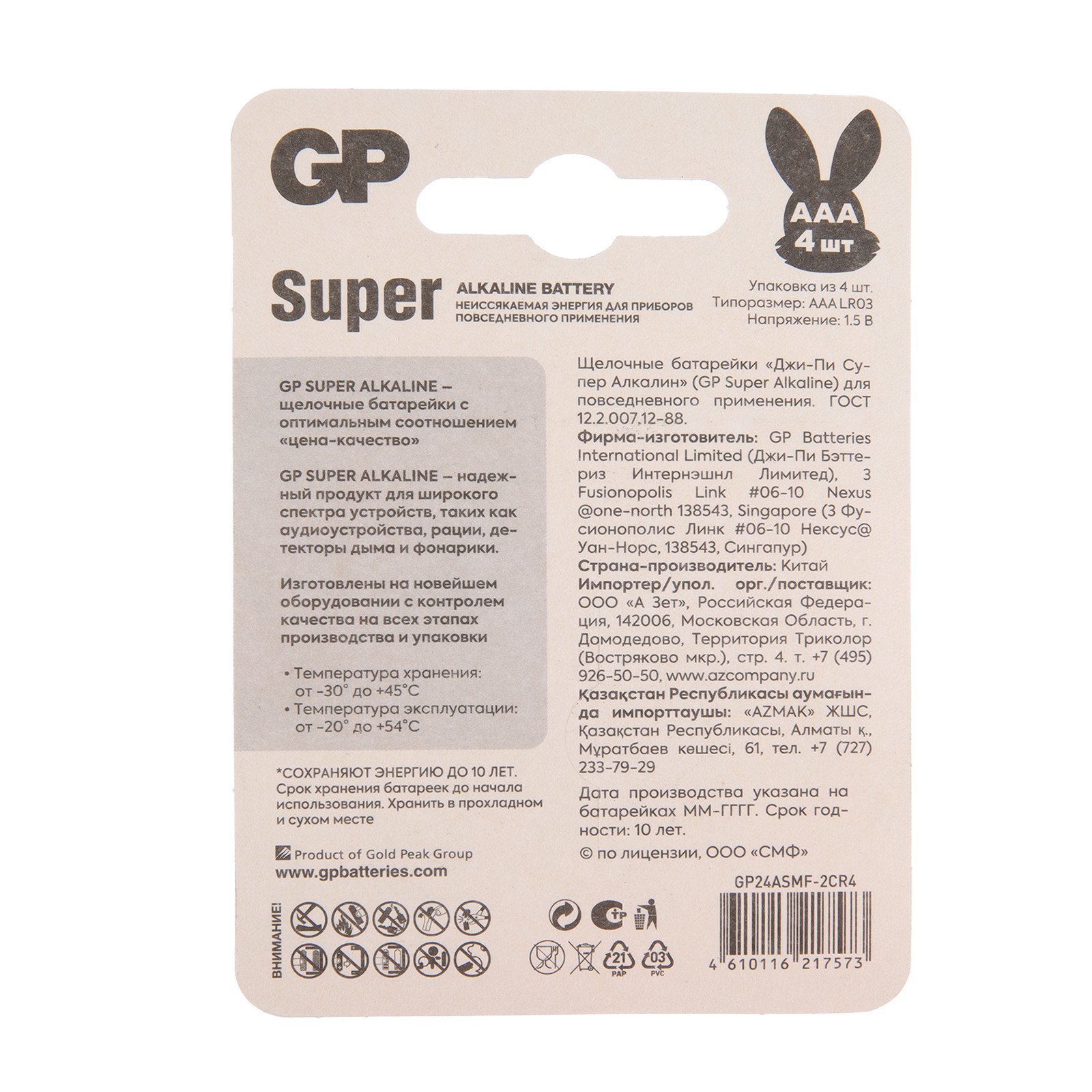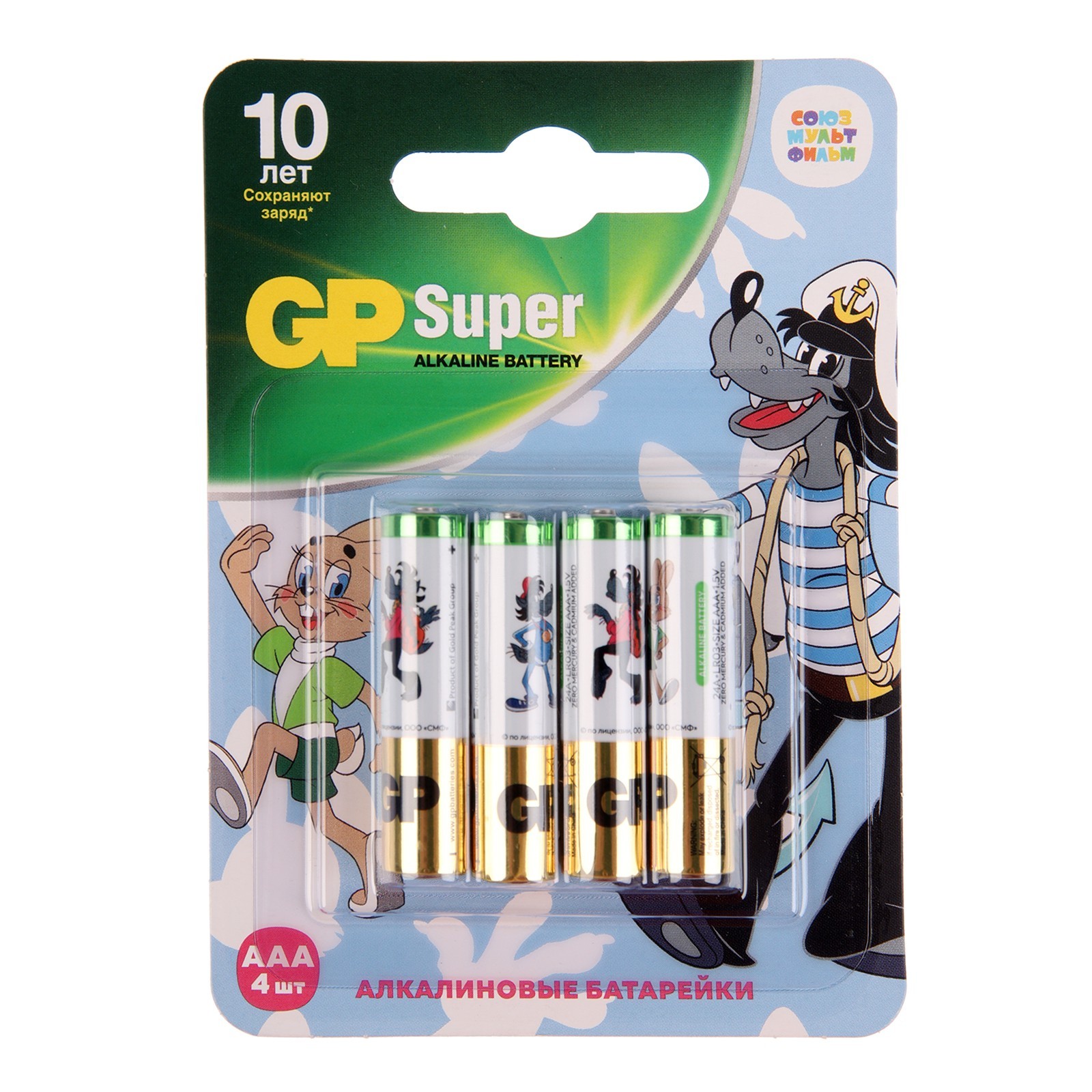 Батарейка алкалиновая Gp Super «ну, погоди!», Aaa, Lr03-4bl, 1.5в, блистер, 4 шт.