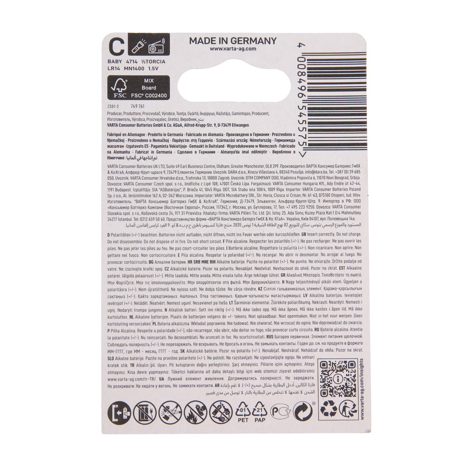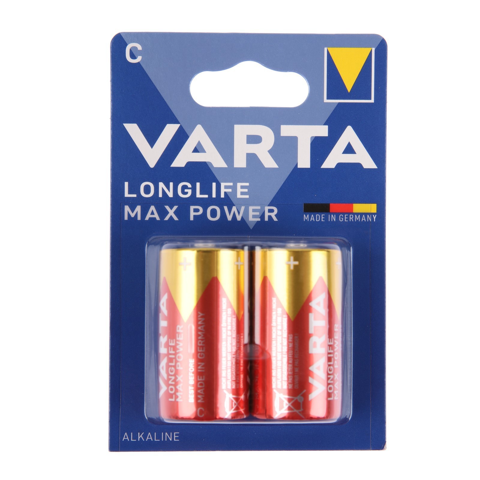 Батарейка алкалиновая Varta Longlife Max Power, с, Lr14-2bl, 1.5в, блистер, 2 шт.