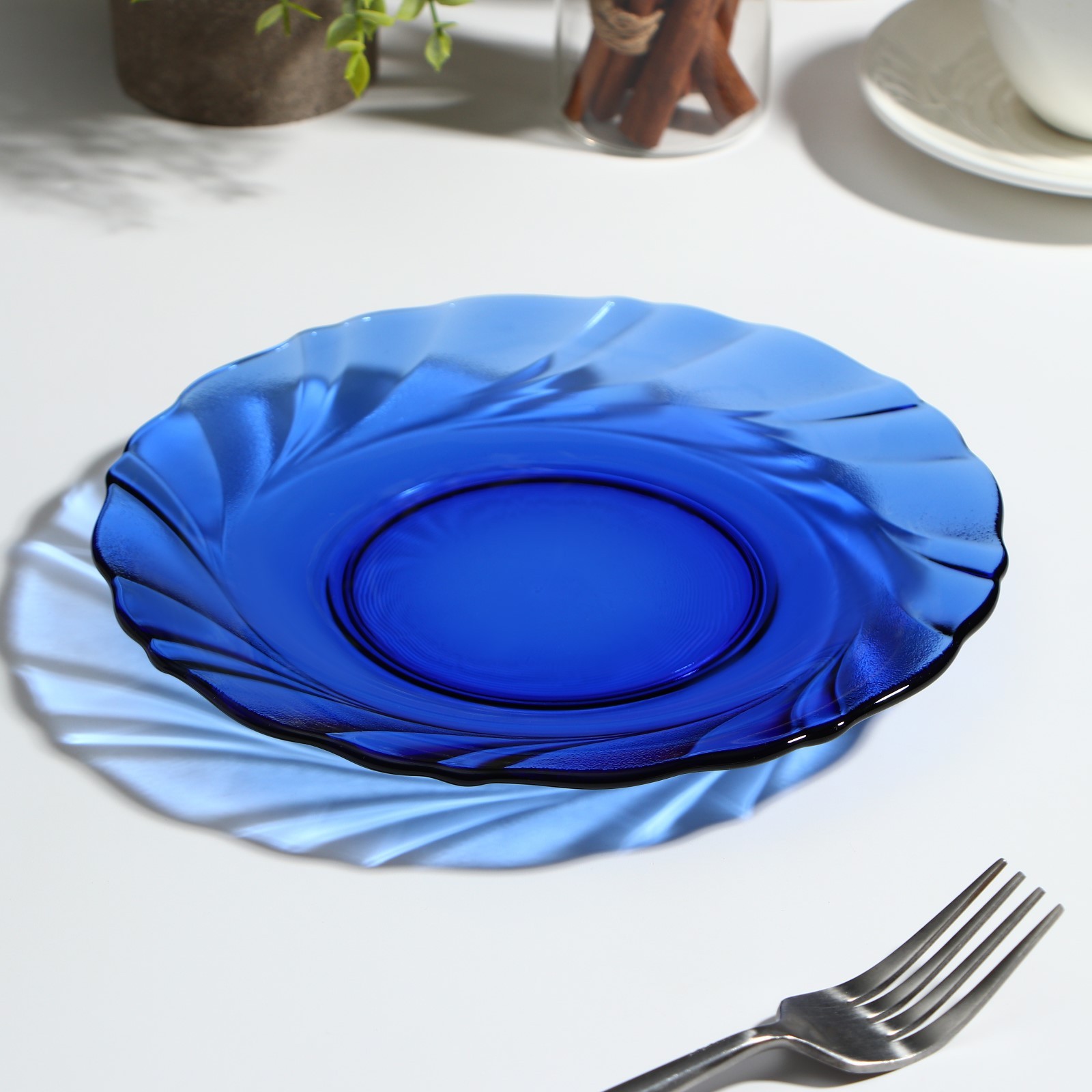 Тарелка плоская Sea Brim, D=21 см, стекло, цвет синий