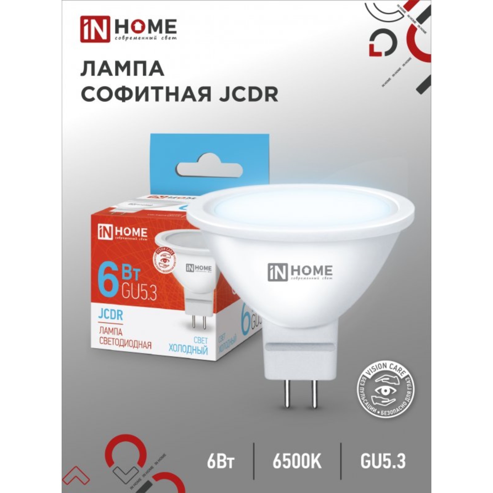 Лампа светодиодная In Home Led-jcdr-vc, 6 вт, 230 в, Gu5.3, 6500 к, 530 лм