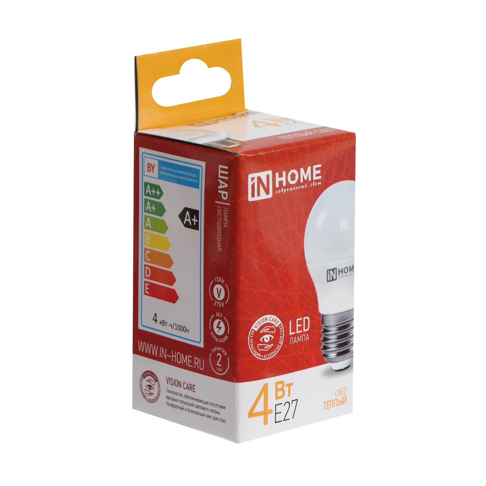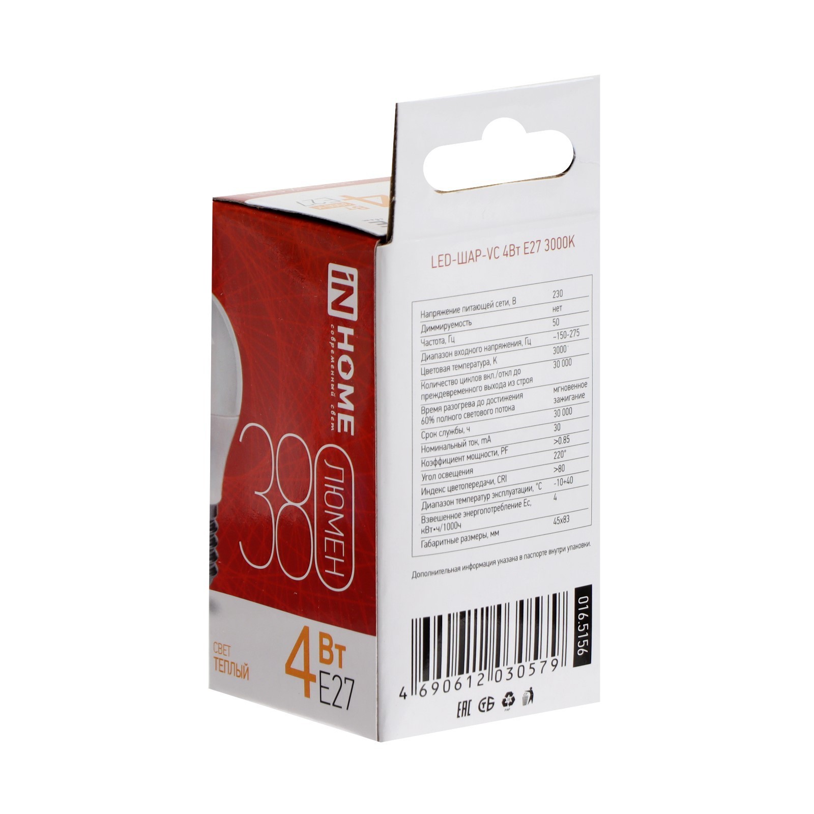 Лампа светодиодная In Home Led-шар-vc, 4 вт, 230 в, е27, 3000 к, 380 лм
