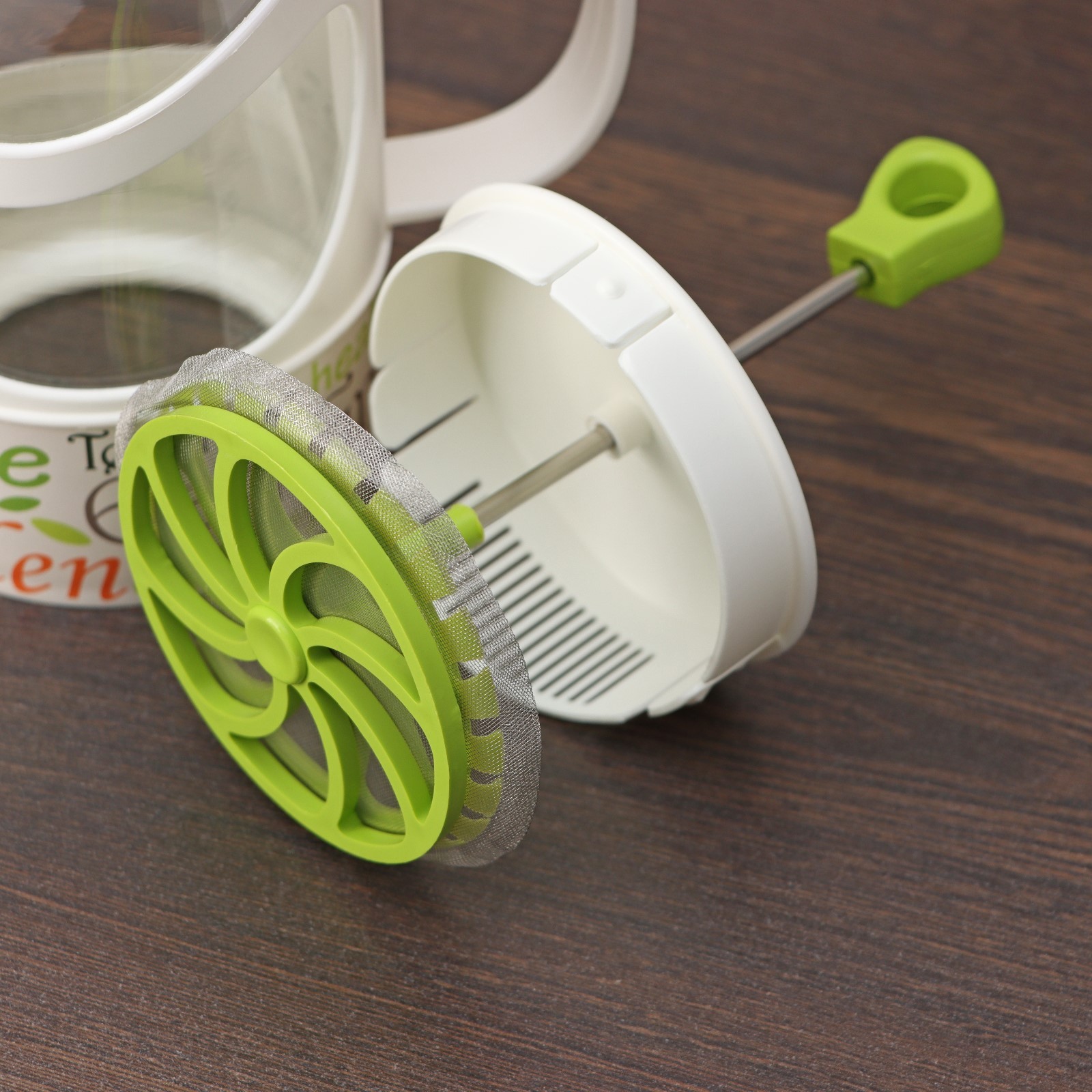 Френч-пресс «арабика», 660 мл. Френч-пресс — удобная ёмкость для заваривания чая, кофе, какао, травяных и ягодных сборов. Стеклянный френч-пресс хорошо держит тепло, раскрывает вкус любимых напитков. Стальной поршень не вступает в реакцию с жидкостью, не наделяет ее металлическим привкусом. Принцип работы френч-пресса прост: В колбу засыпают смесь для заваривания, заливают водой, накрывают крышкой и дают настояться несколько минут согласно рецептуре. Когда настой готов, плунжер плавно опускают вниз. Так вся гуща остается под прессом, а вверху получается чистый напиток, который можно разливать по чашкам. Цвет: Белый Цвет: Зелёный parts count: 0 Диаметр колбы, см: 8.9 Высота колбы, см: 17.3 Объём, мл: 660 tnved: 7013499900 Материал: Нержавеющая сталь Материал: Пластик Материал: Стекло Можно мыть в посудомоечной машине: Нет  развернуть описание ▼