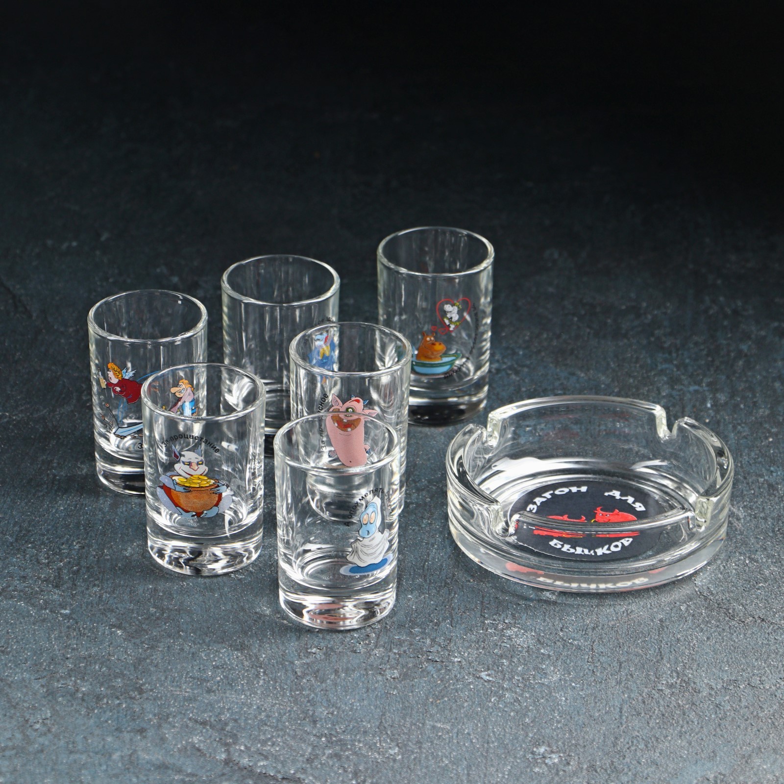 Набор «приколы», 7 предметов: 6 стопок 50 мл, пепельница