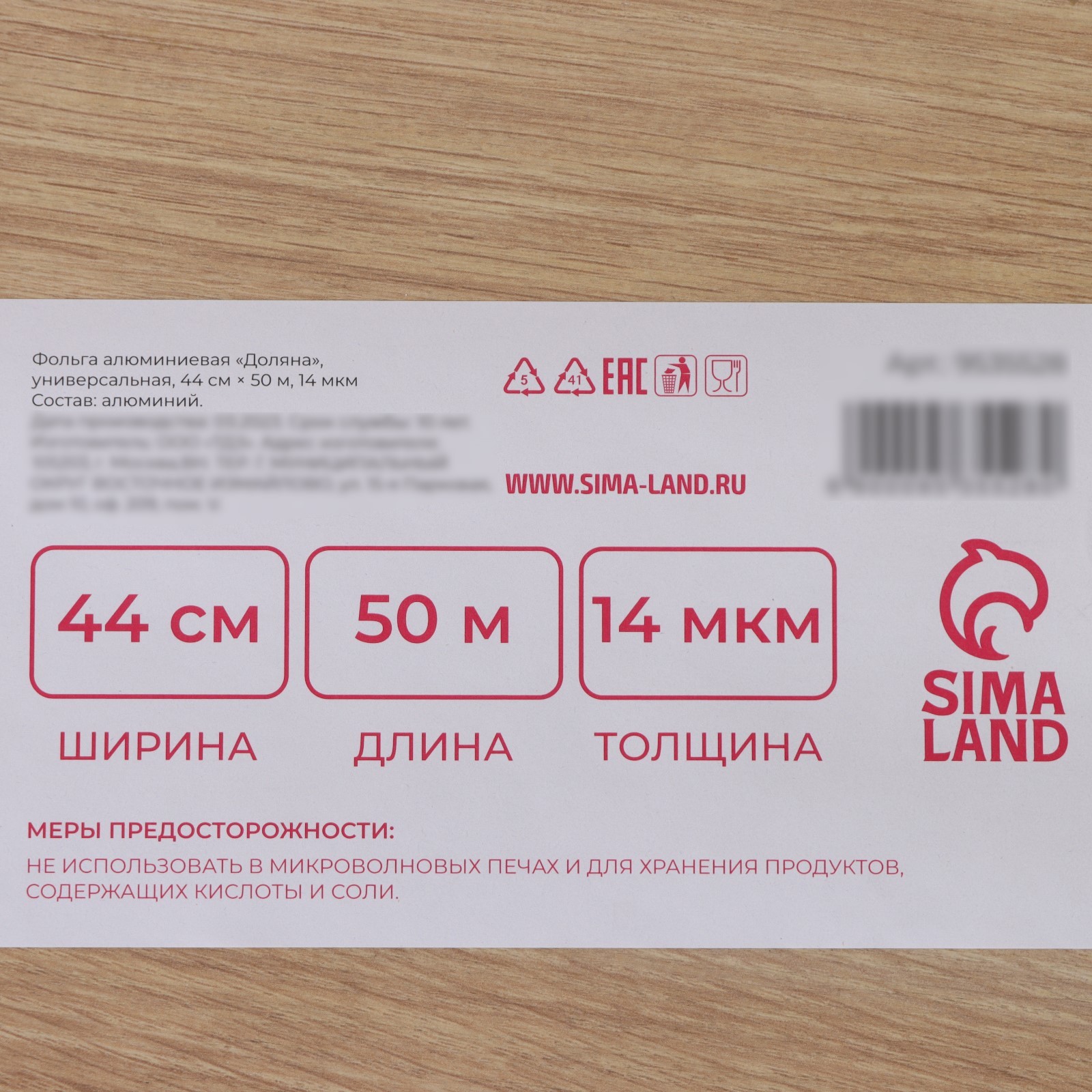 Фольга пищевая алюминиевая доляна «премиум», 44 см X 50 м, 14 мкм
