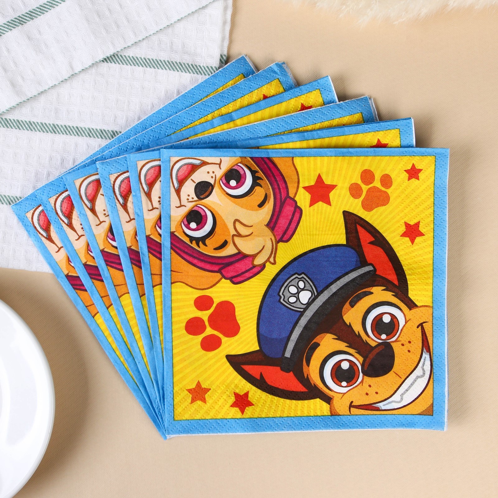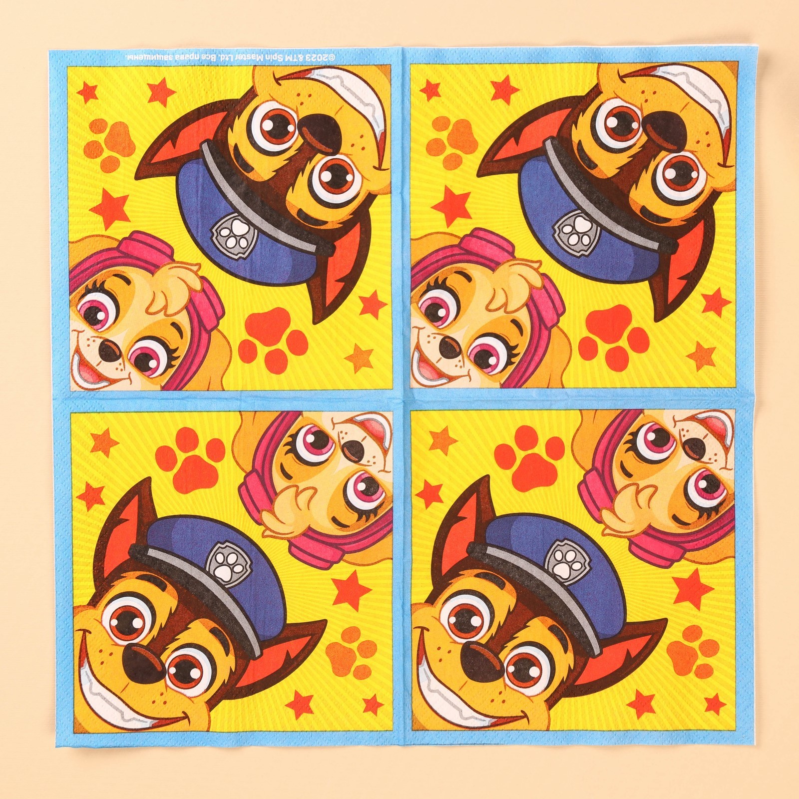 Салфетки бумажные "скай и гончик", 33х33 см, 20 штук, 3-х слойные, щенячий патруль