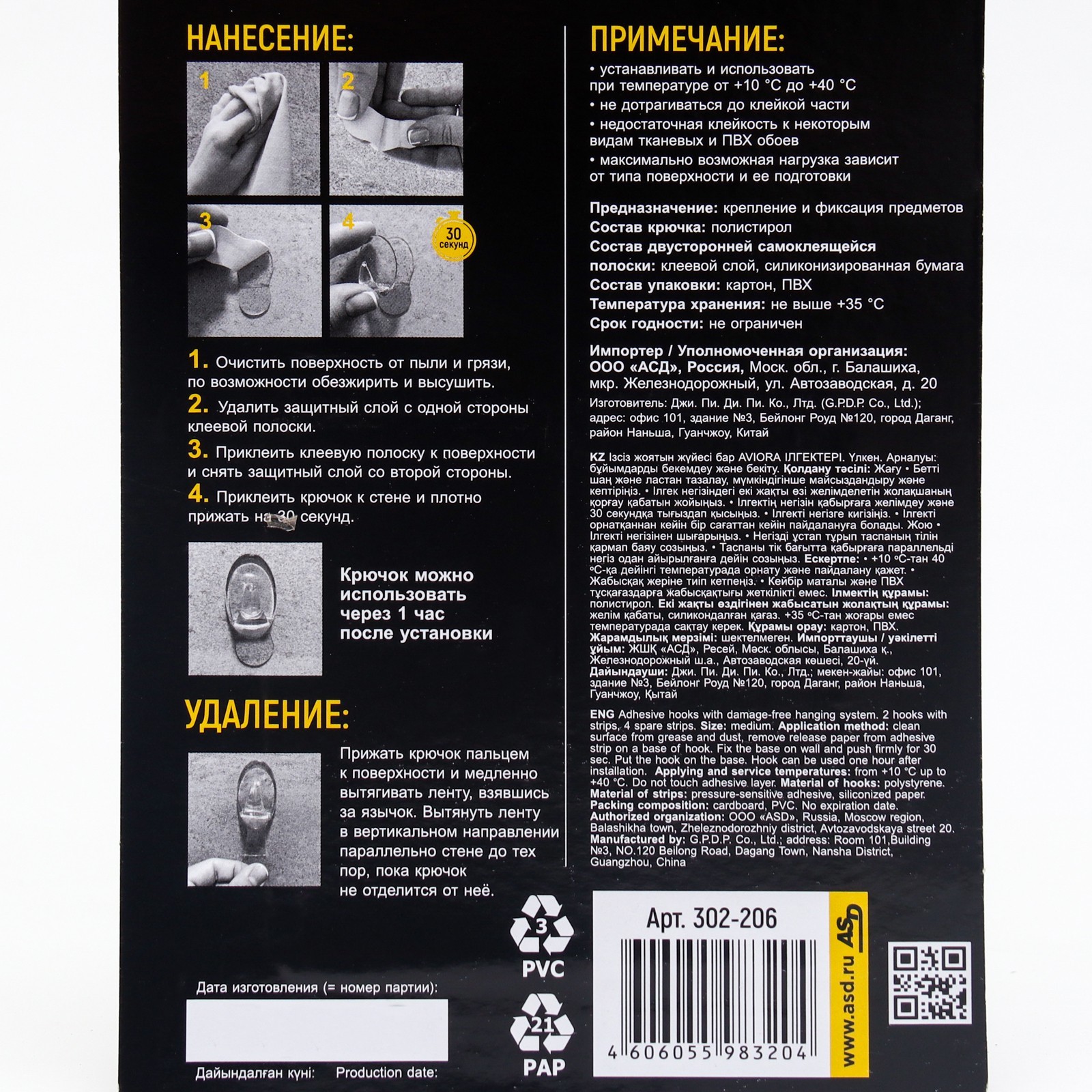 Универсальные самоклеящиеся крючки с системой бесследного удаления малые, aviora. Универсальные самоклеящиеся крючки AVIORA с системой бесследного удаления, малые, 2 шт. 302-206 используются на любых поверхностях для временной фиксации лёгких предметов: полотенец, халатов, плакатов, календарей, фотографий, информационных листов, губок для душа, ключей, брелоков и многого другого. Цвет: Белый parts count: 0 В упаковке, шт.: 2 Количество крючков: 2 Материал: Пластик Температурное ограничение: Нет Вид крепления: Клеевая основа  развернуть описание ▼