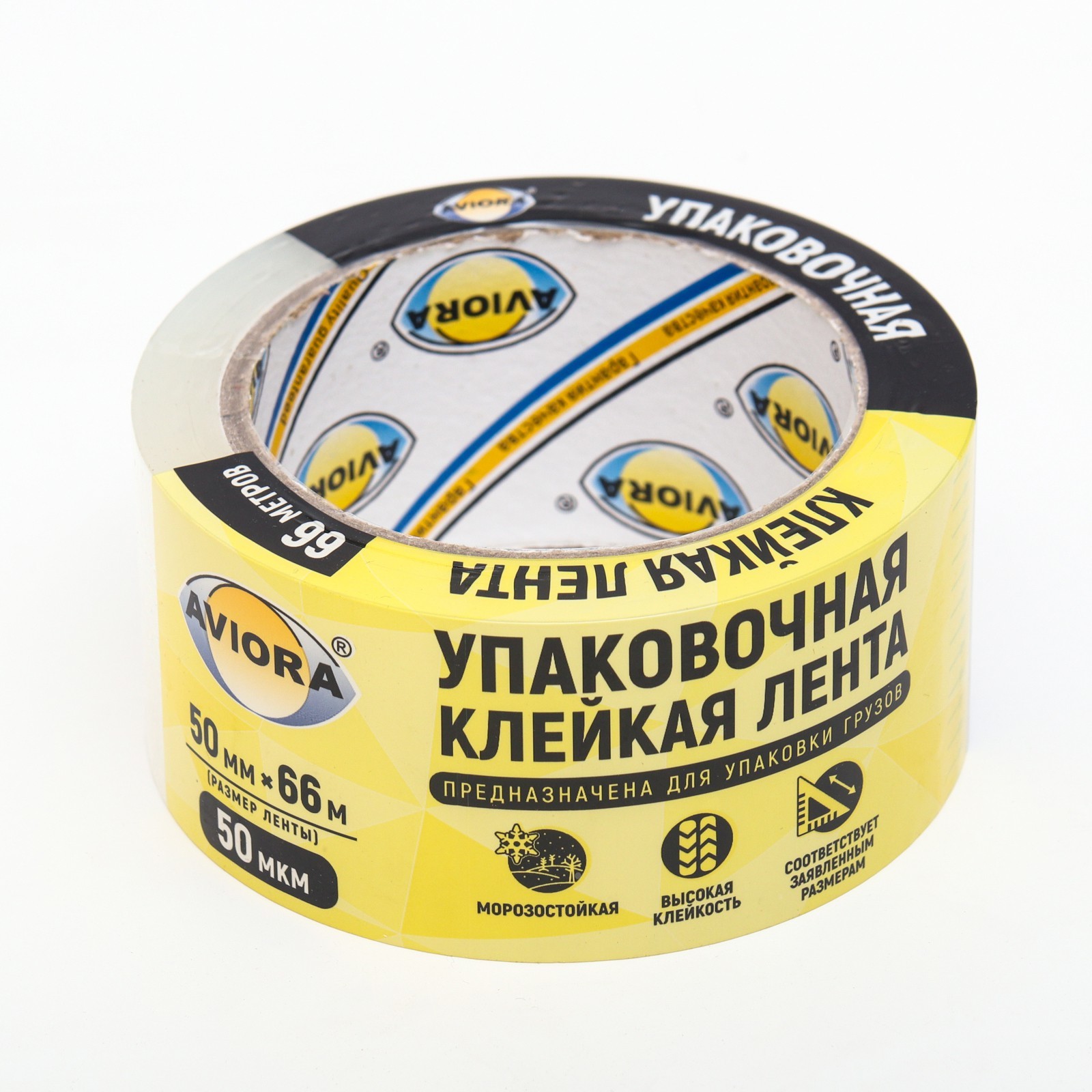 Упаковочная клейкая лента «avior» прозрачная, 50 мм х 66 м, 50 мкм
