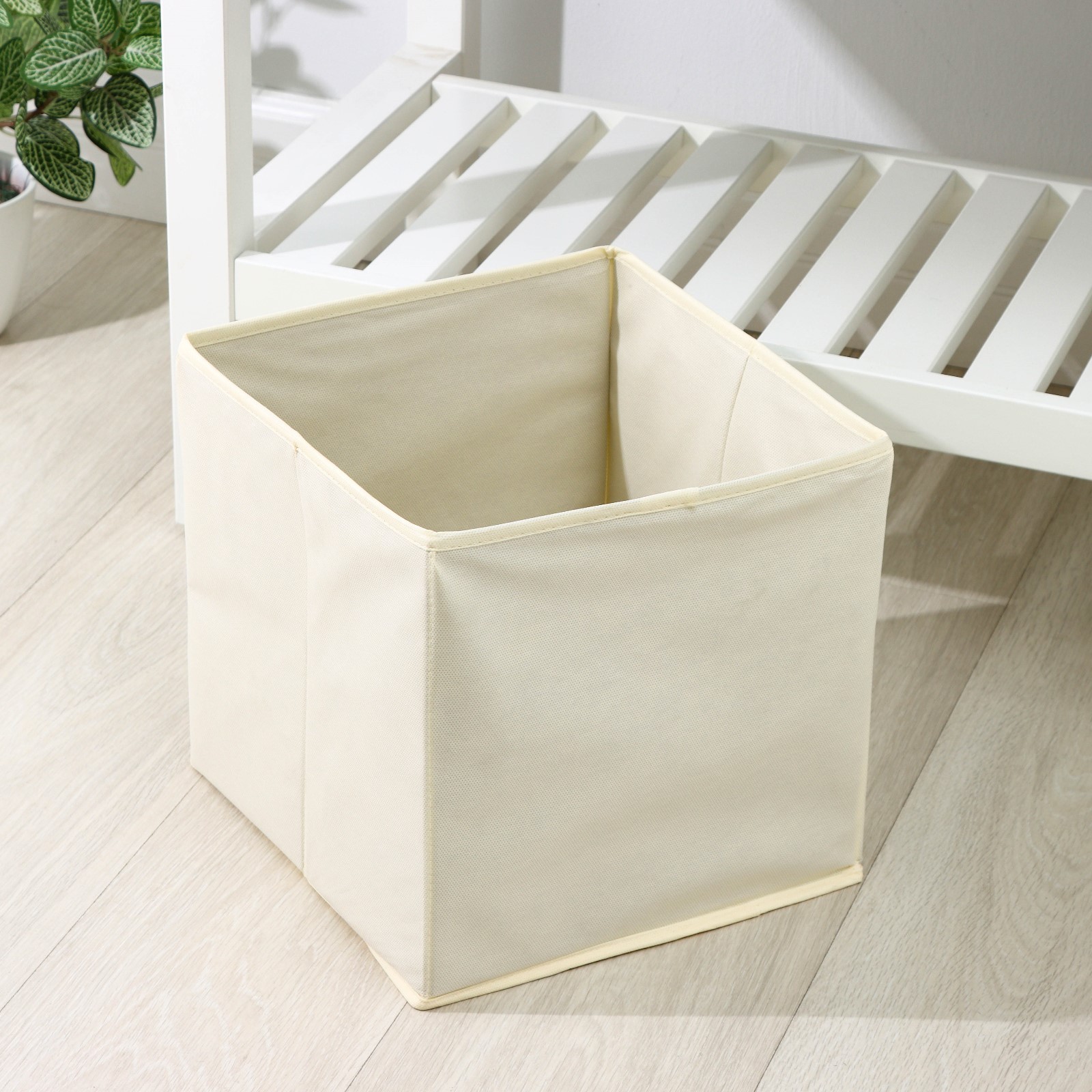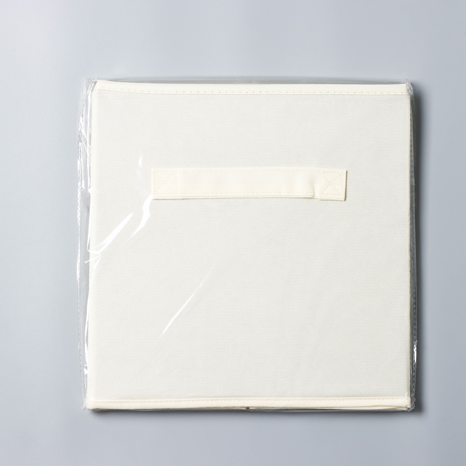 Короб для хранения, 28x28x28 см, цвет молочный. Грамотная организация складирования вещей в квартире – залог порядка и легкого поиска нужных предметов. Отличным решением этой задачи могут стать короб для хранения. Они защитят содержимое от повреждений и помогут оптимизировать пространство. Преимущества:Соблюдение порядка;Бережное хранение;Компактность;Сортировка;Универсальность. Цвет: Белый Форма: Квадратная Ширина, см: 28 Высота, см: 28 Глубина, см: 28 parts count: 0 Объём, л: 22 Тематика: Однотонная Крышка: Нет Материал: Спанбонд Штабелируемый: Да Температурное ограничение: Нет Назначение: Для игрушек Назначение: Для одежды Основной материал: Спанбонд Форма: Квадрат, куб  развернуть описание ▼