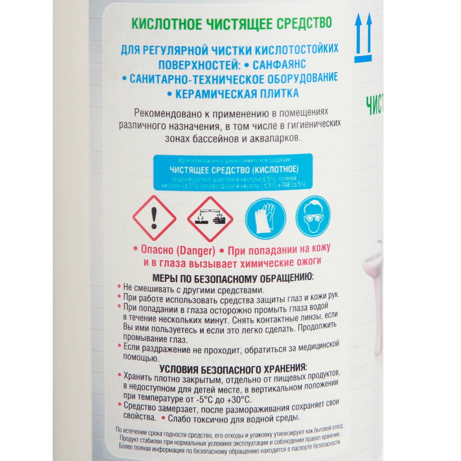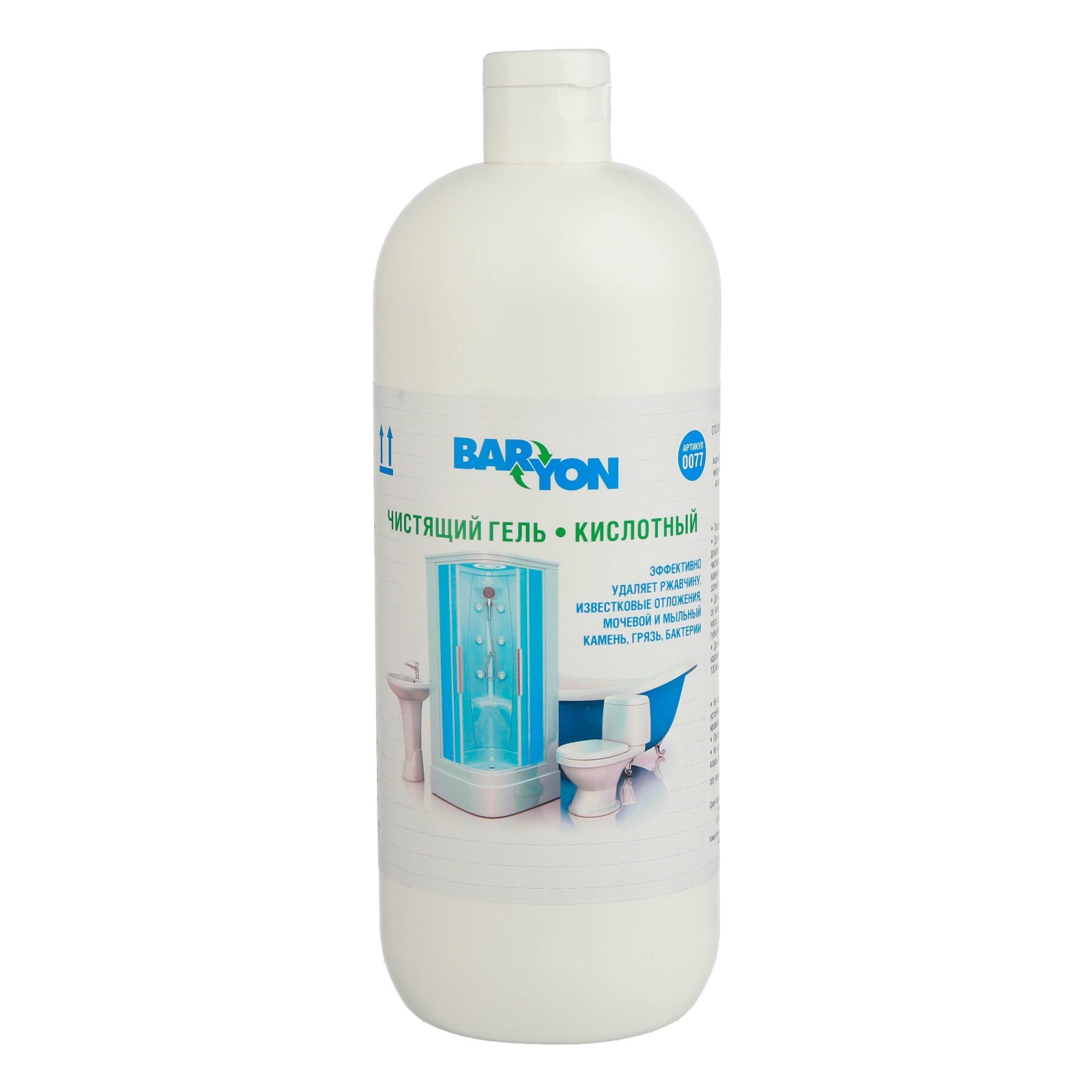 Кислотное чистящее средство baryon, 1 кг. Эффективно удаляет ржавчину, известковые отложения, мочевой и мыльный камень, грязь, бактерии. Назначение: Для регулярной чистки санитарно-технического оборудования, напольной и настенной плитки в гигиенических зонах бассейнов и аквапарков. Область применения: Гелеобразное кислотное чистящее средство предназначено для регулярной чистки санитарно-технического оборудования, напольной и настенной плитки в помещениях различного назначения, в том числе в гигиенических зонах бассейнов и аквапарков. Состав: водный раствор АПАВ или НПАВ (менее 5 %), щавелевой кислоты (менее 5%), соляной или сульфаминовой кислоты (менее 5%), ортофосфорной кислоты (менее 5%), антикоррозионной добавки, загустителя и отдушки. Способ применения: - Для унитазов и санитарно-гигиенического оборудования следует использовать неразбавленное чистящее средство. Средство нанести на обрабатываемую поверхность, растереть губкой или щеткой и затем смыть водой. - Для удаления сильных загрязнений рекомендуется нанести средство на обрабатываемую поверхность и оставить на 5-10 минут. Затем растереть губкой или щеткой и тщательно смыть водой. - Для мытья душевых, раковин, ванн, настенной и напольной плитки использовать 5-10% раствор (50-100 мл на 1 литр воды). Вес, кг/Объём, л: 1 Вид средства: Прочие Форма выпуска: Жидкость Температурное ограничение: Нет  развернуть описание ▼