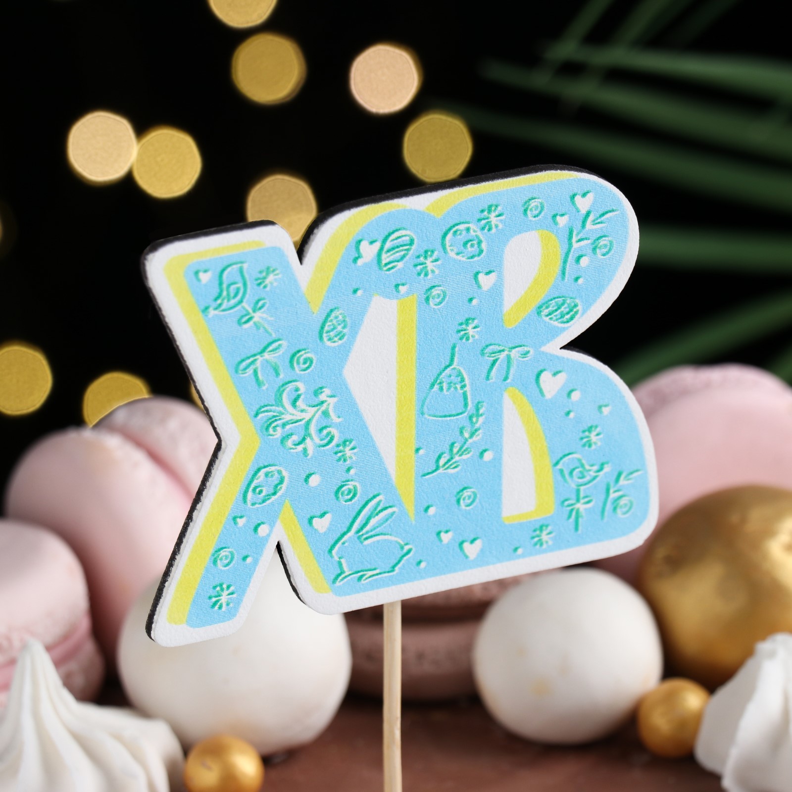 Топпер деревянный "хв", 8,6х28 см, голубой
