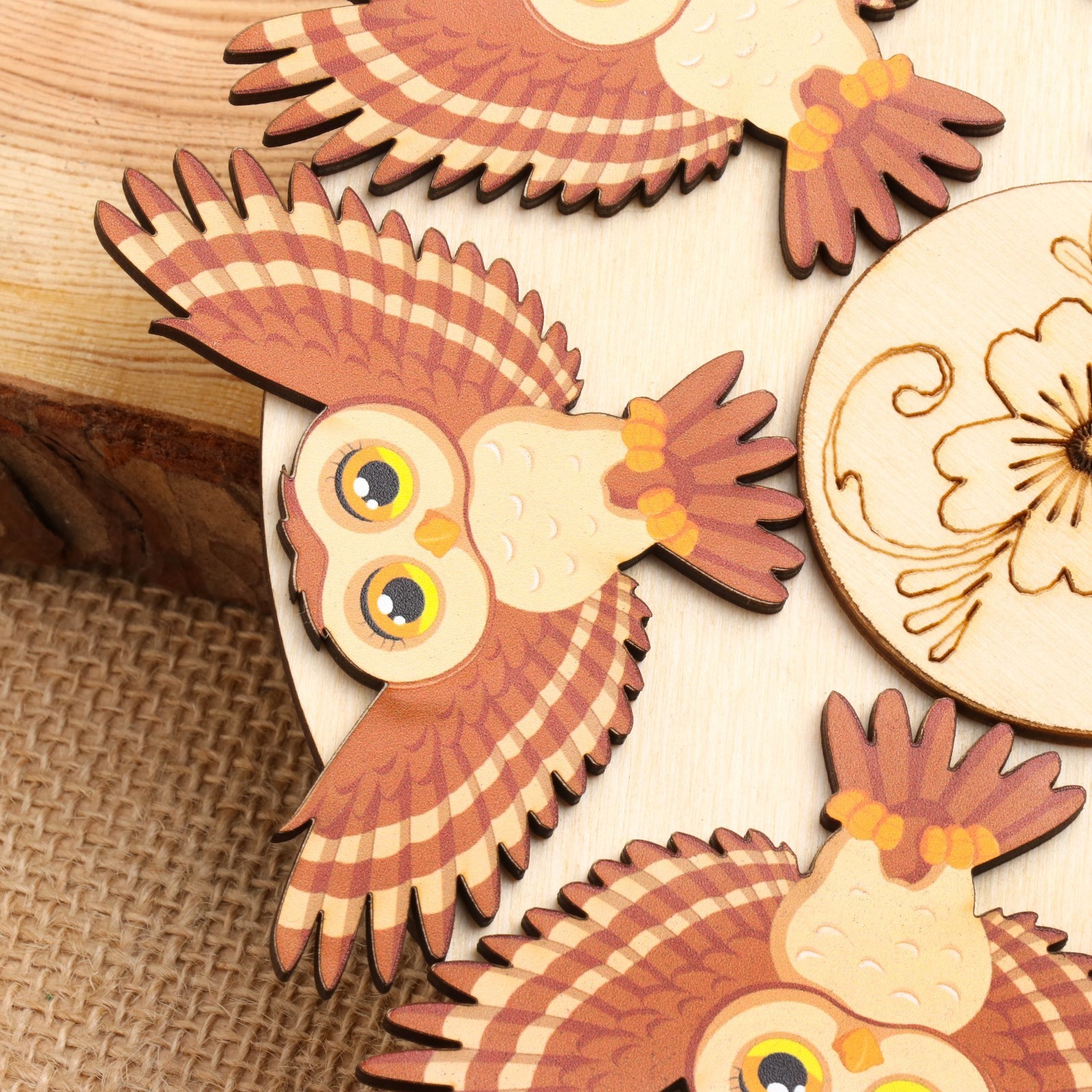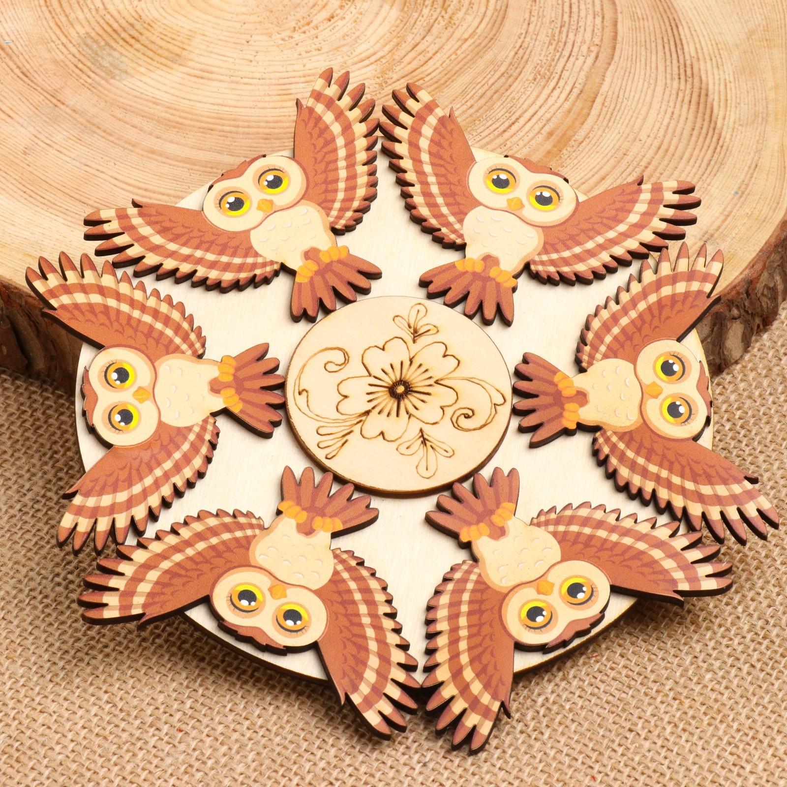 Подставка под горячее "цветная сова", 20х20 см, микс дерева