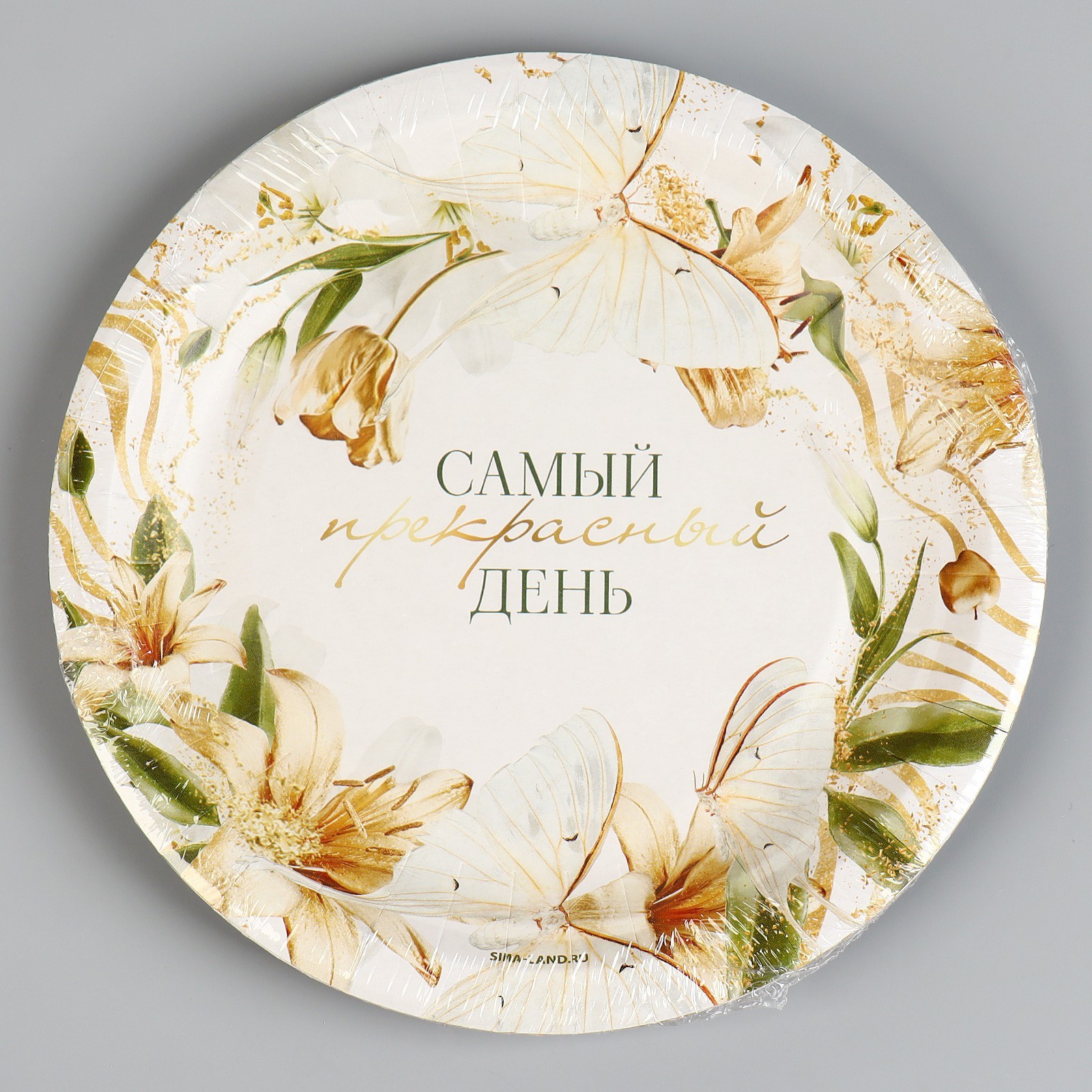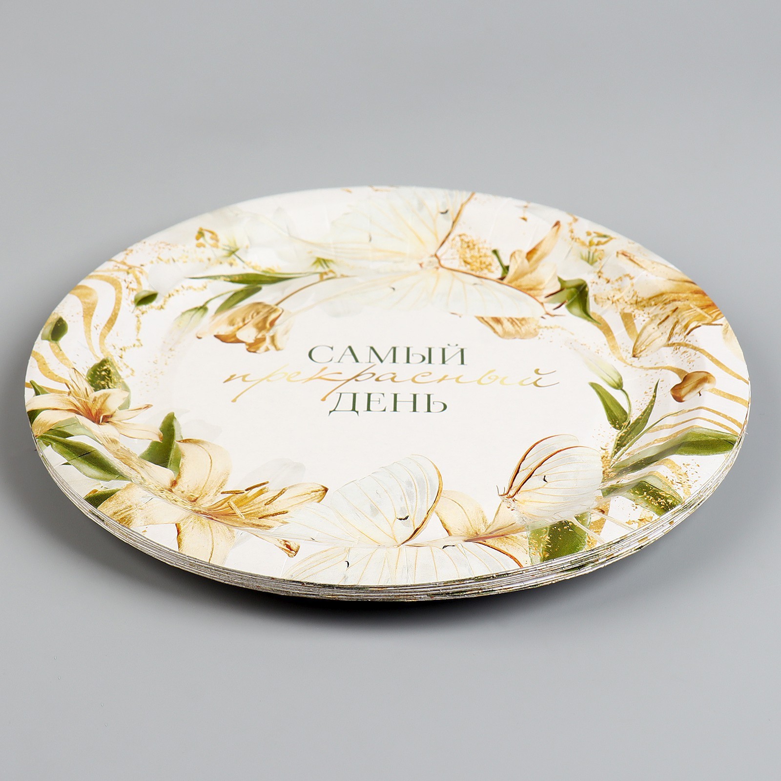 Тарелка одноразовая бумажная "самый прекрасный день", 18 см