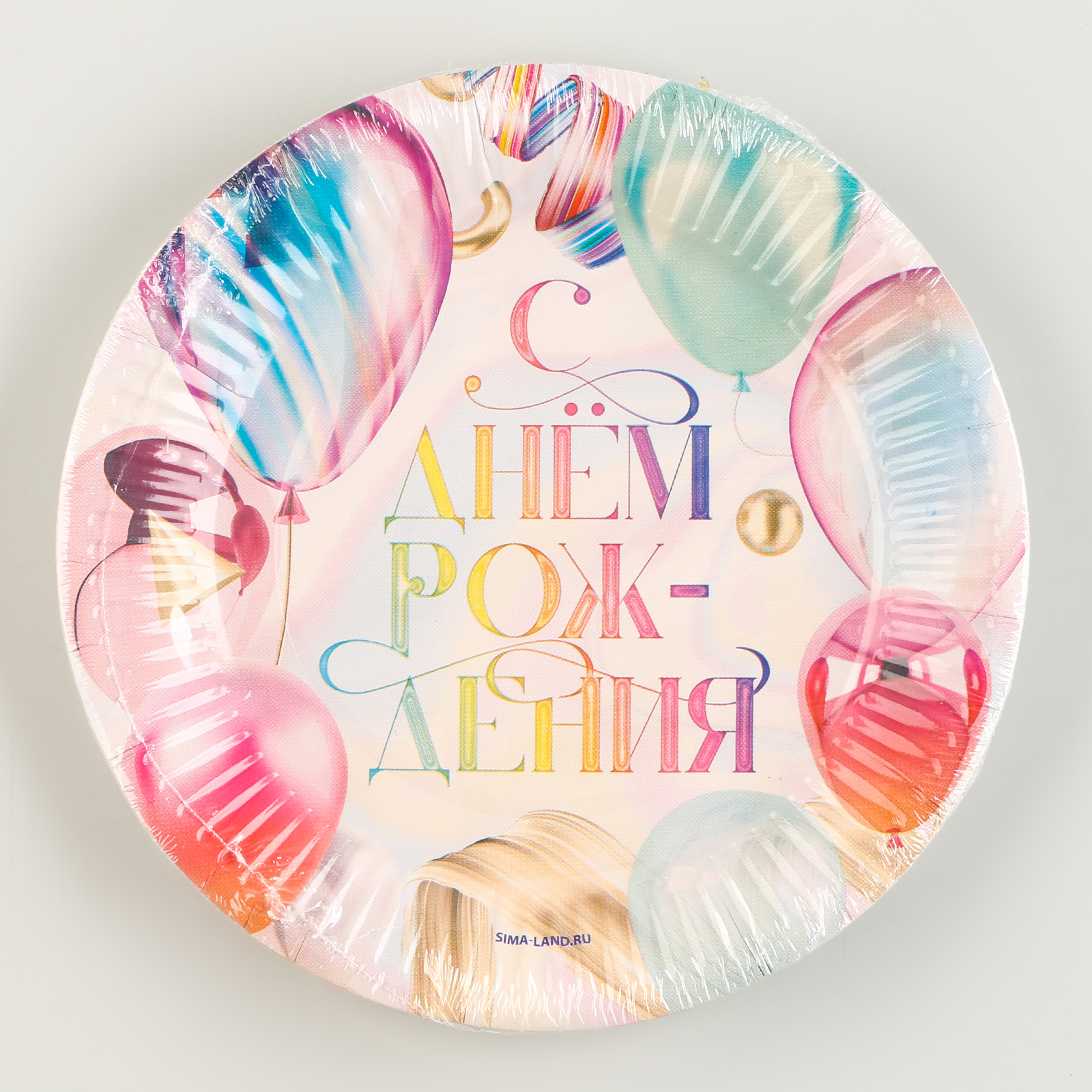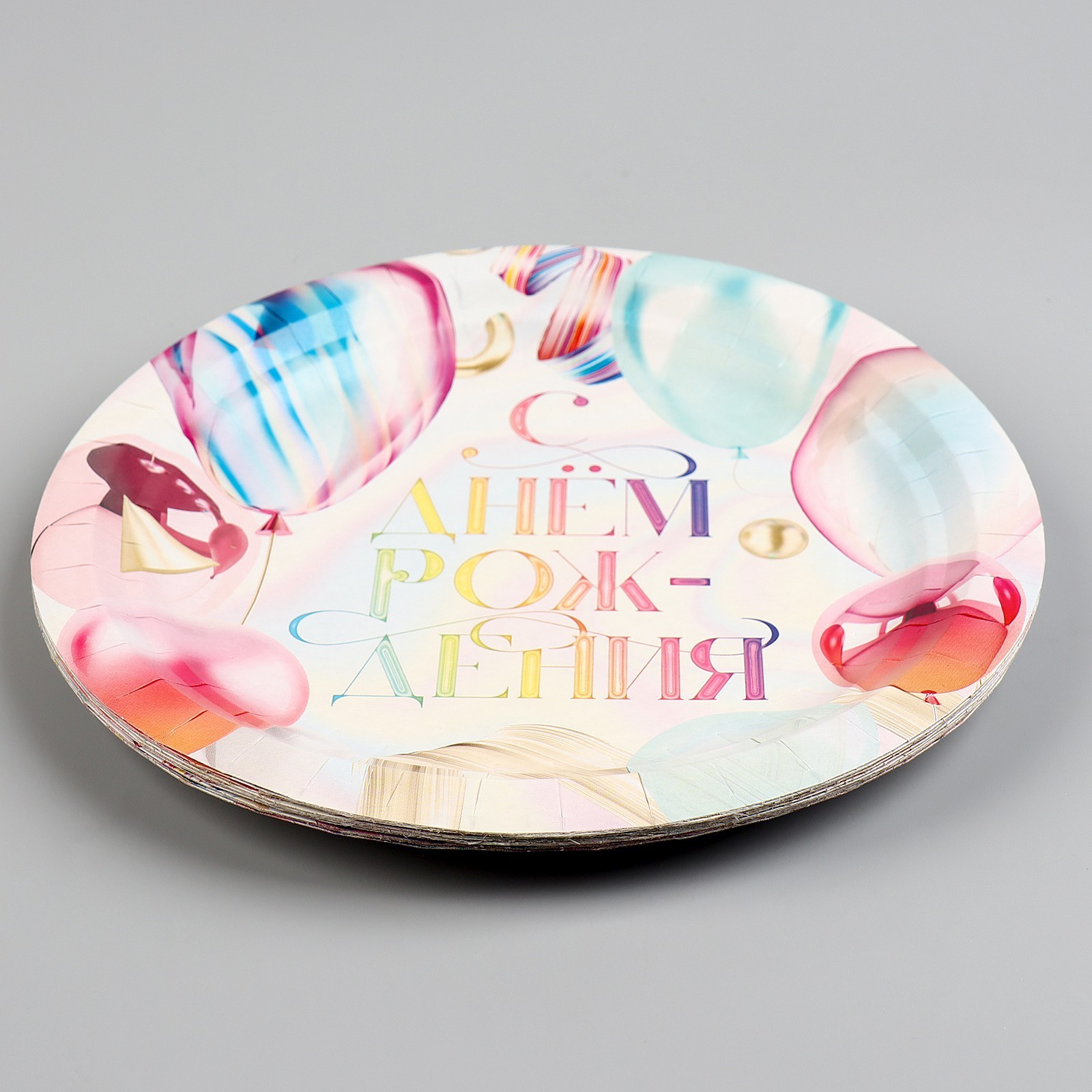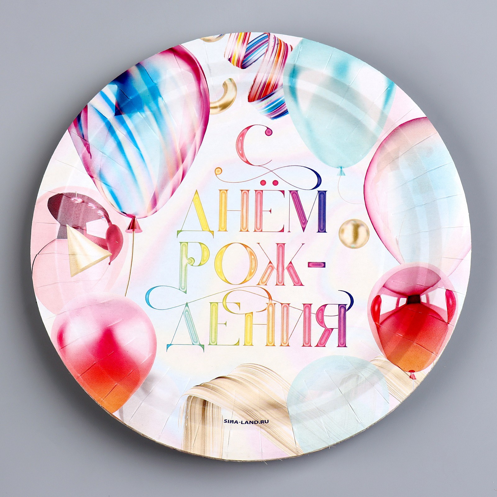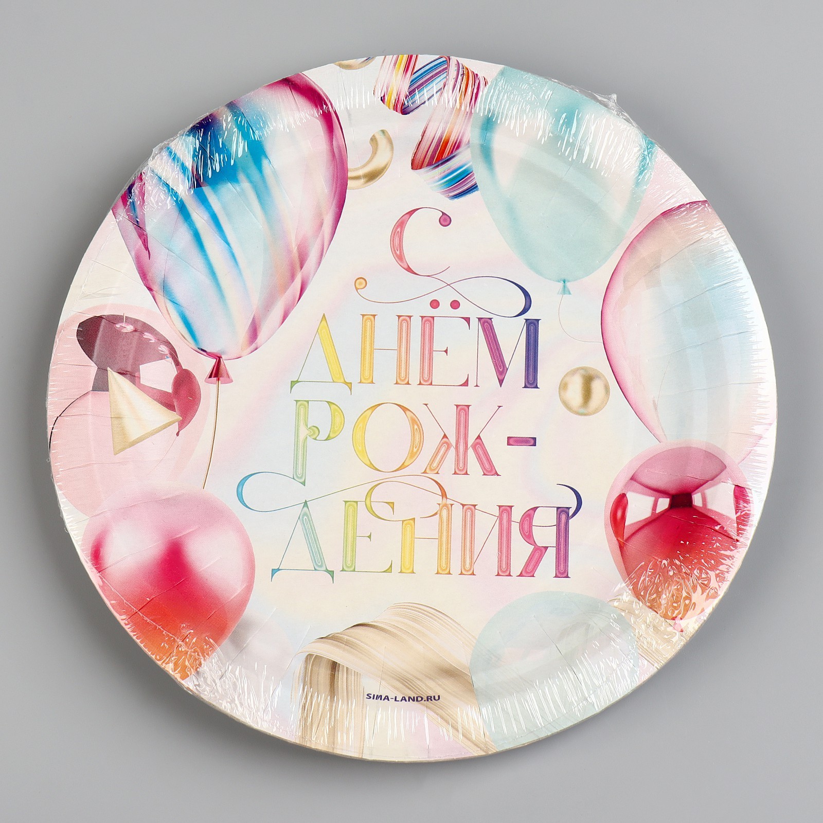 Тарелка одноразовая бумажная "с днём рождения", шары, 18 см