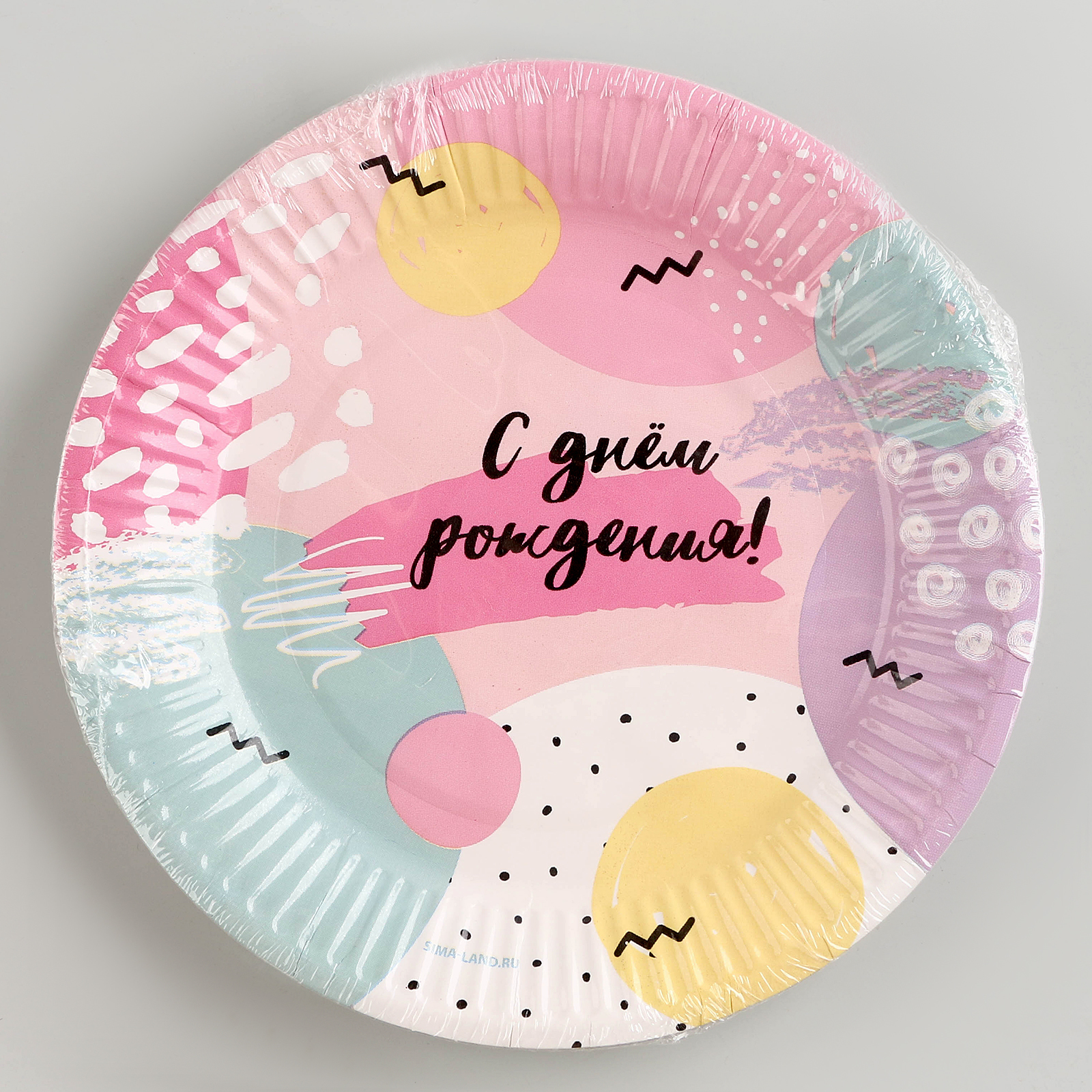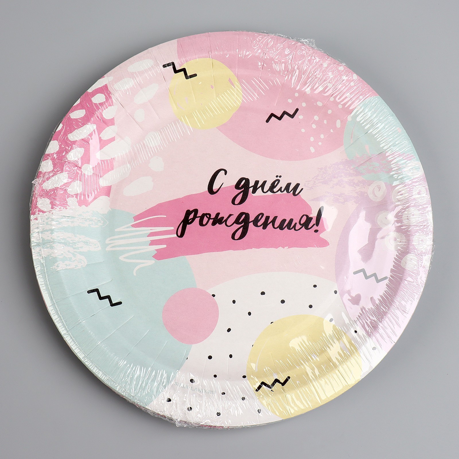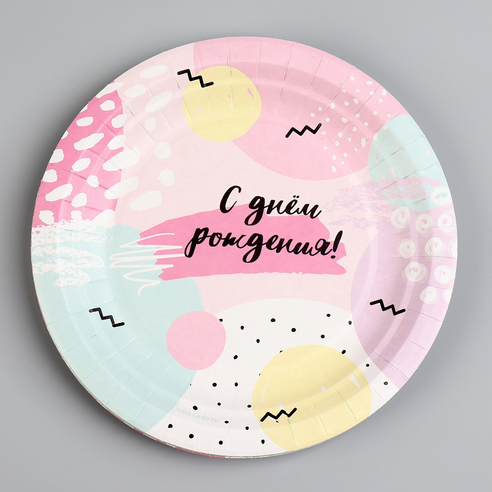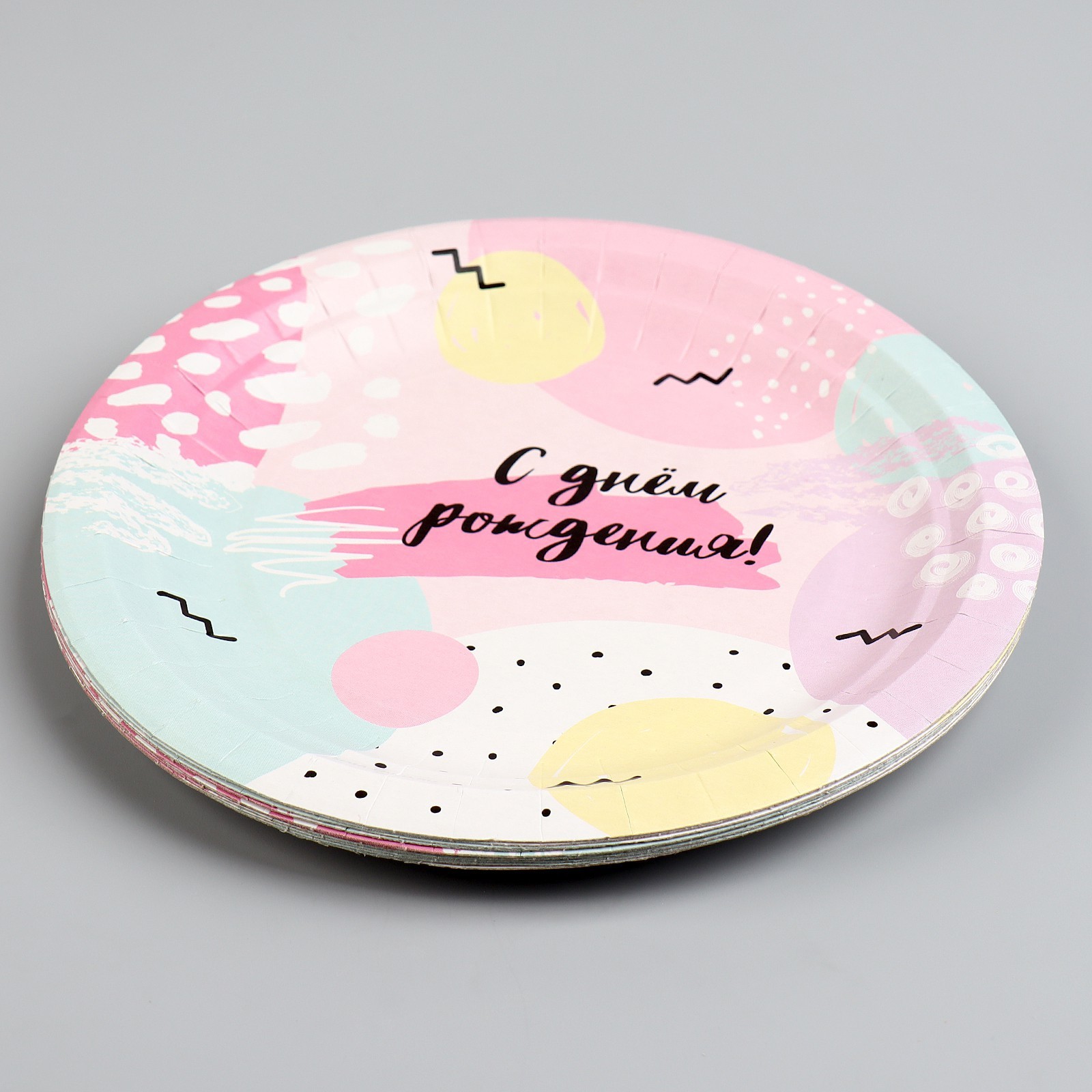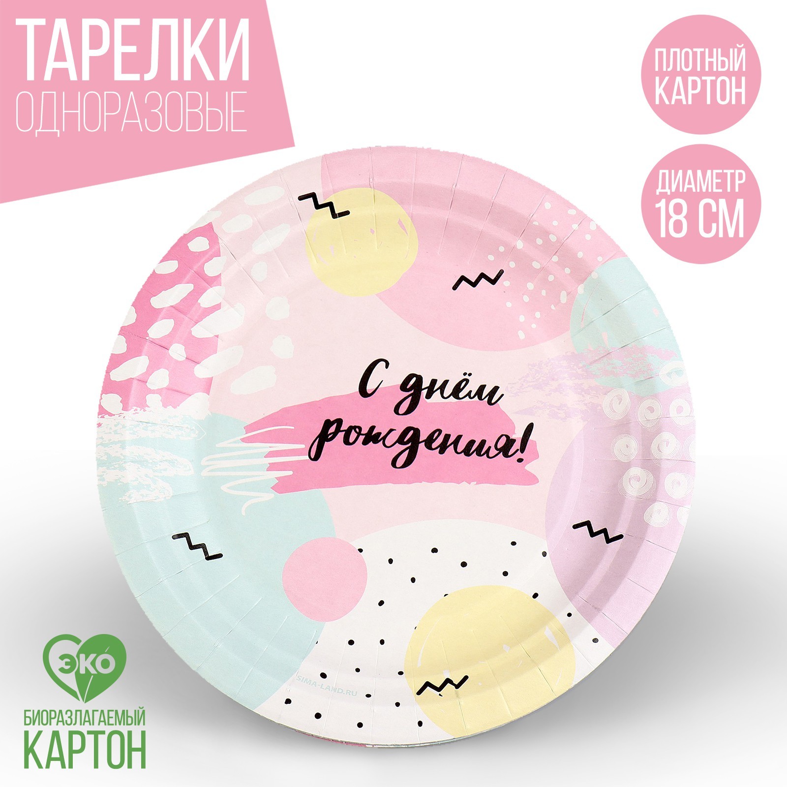 Тарелка одноразовая бумажная "с днём рождения", 18 см