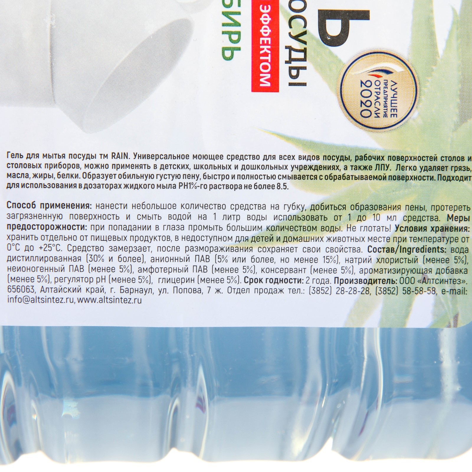 Гель для посуды rain, алоэ- имбирь, пэт 5л. Гель для мытья посуды тм RAIN. Универсальное моющее средство для всех видов посуды, рабочих поверхностей столов и столовых приборов, можно применять в детских, школьных и дошкольных учреждениях, а также ЛПУ. Легко удаляет грязь, масла, жиры, белки. Образует обильную густую пену, быстро и полностью смывается с обрабатываемой поверхности. Подходит для использования в дозаторах жидкого мыла PH 1%-го раствора не более 8. 5. parts count: 0 Вес, г/Объём, мл: 5000 : 0 Температурное ограничение: Нет Вид: Гель  развернуть описание ▼