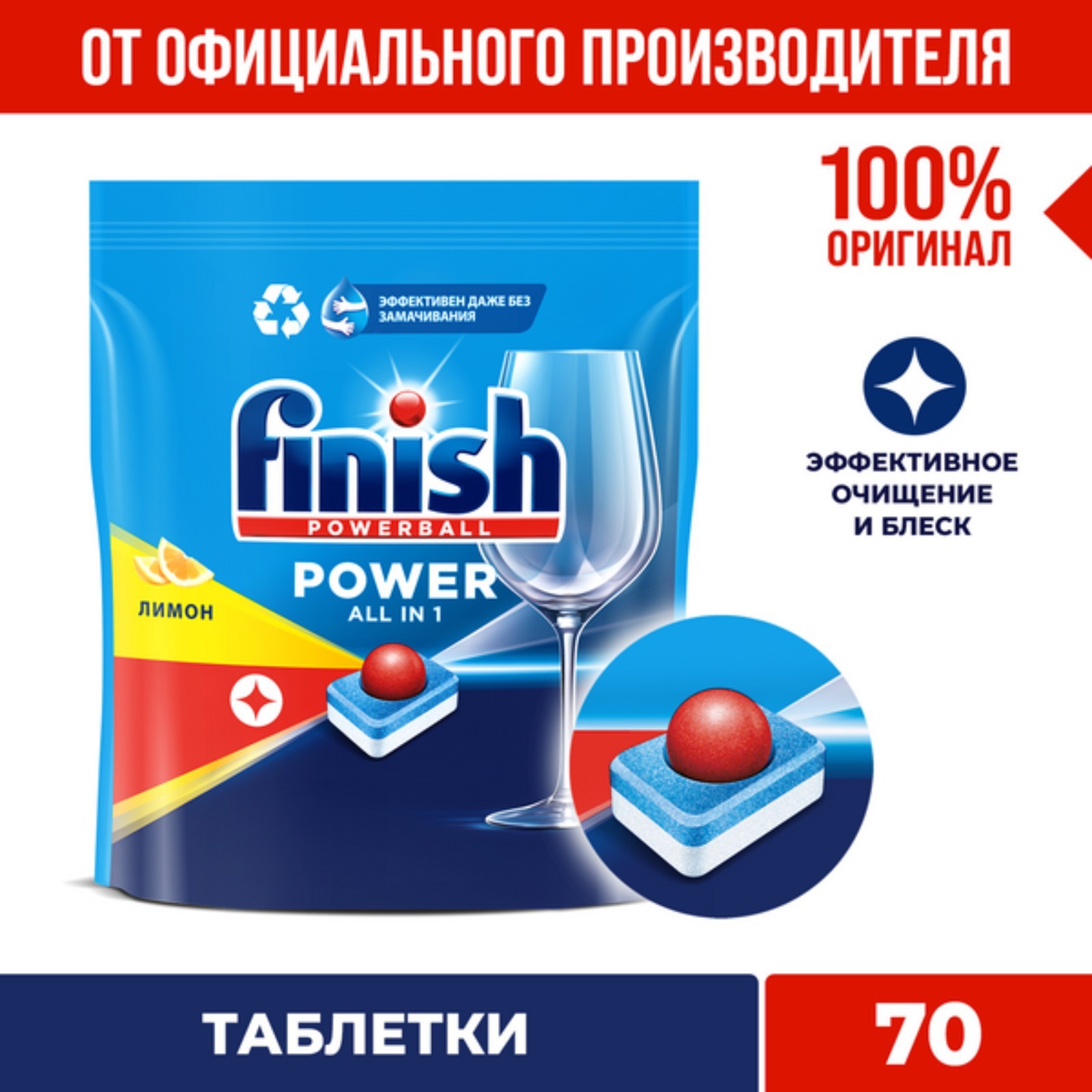 Таблетки для мытья посуды в посудомоечные машины Finish Power, аромат лимона, 70 шт.