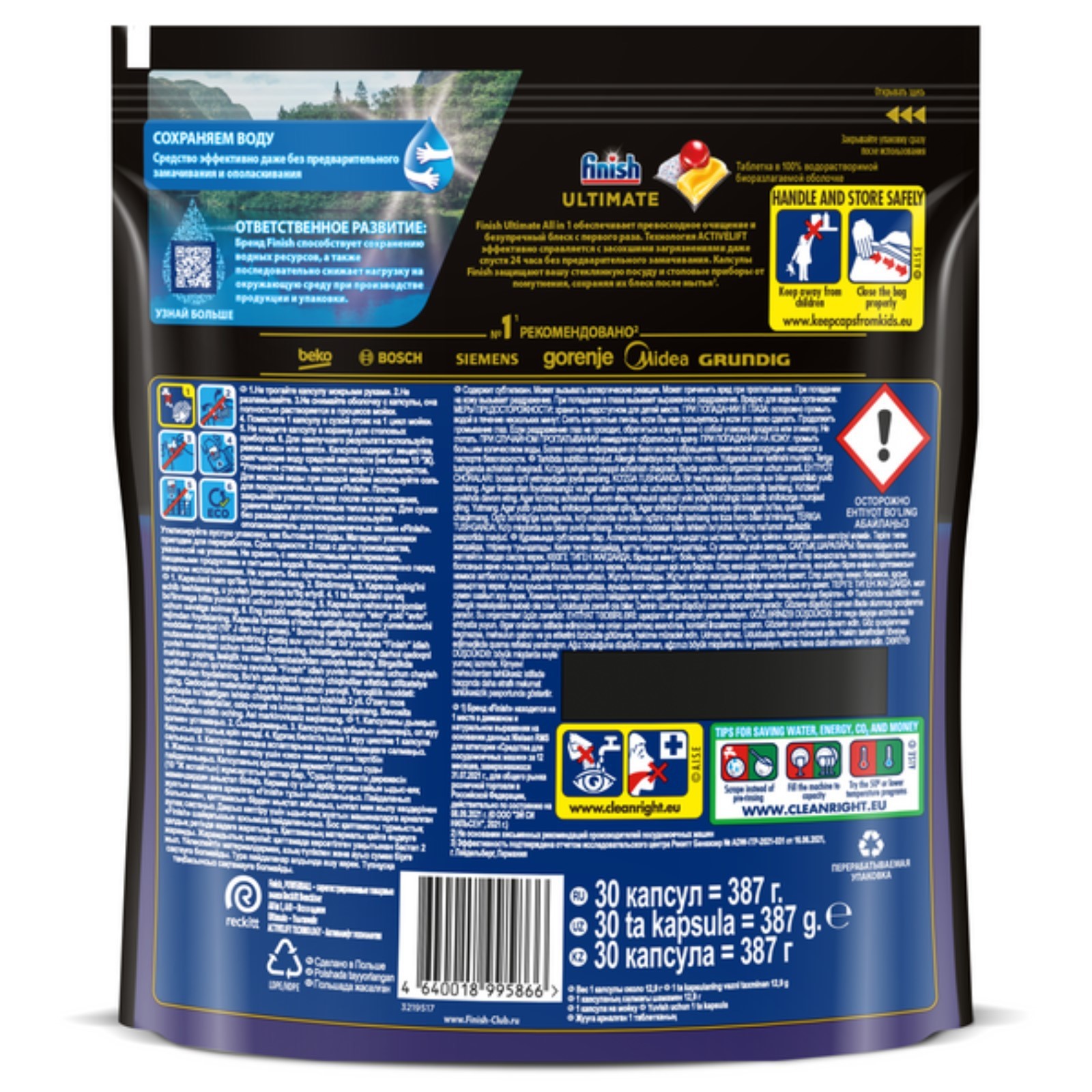 Капсулы для мытья посуды в посудомоечные машины Finish Ultimate, аромат лимона, 30 шт.