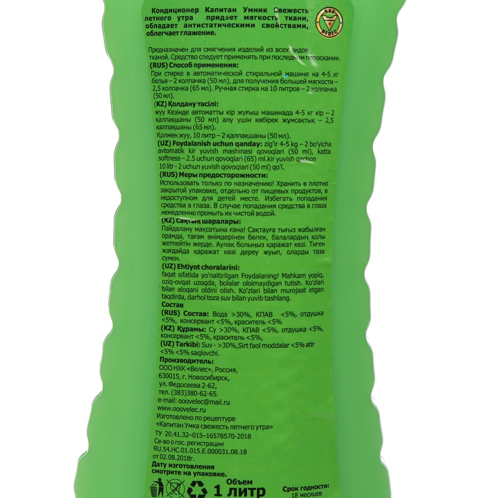 Конционер для белья капитан умник "свежесть летнего утра", 1 л