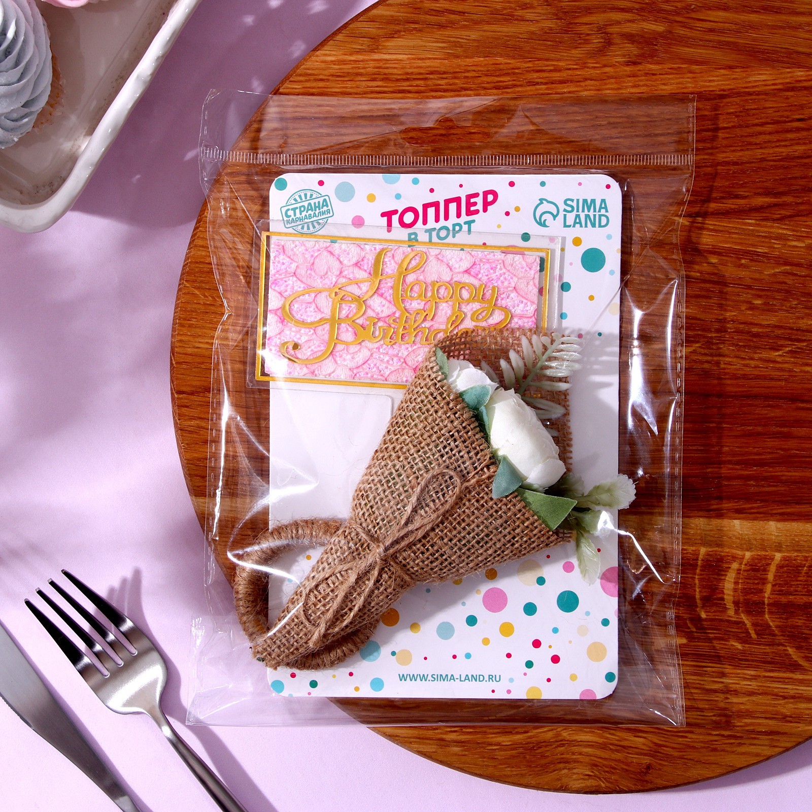 Набор для украшения: топпер «с днём рождения» 1 шт, кольцо для салфеток 1 шт, микс
