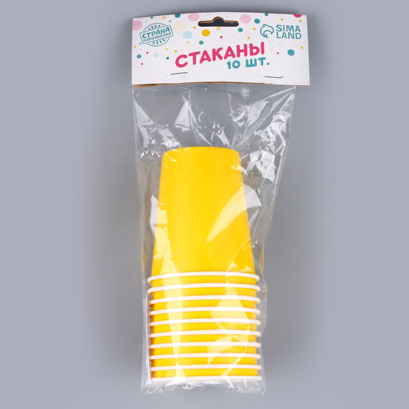 Стакан одноразовый бумажный однотонный, цвет жёлтый, объем 250 мл, набор 10 штук