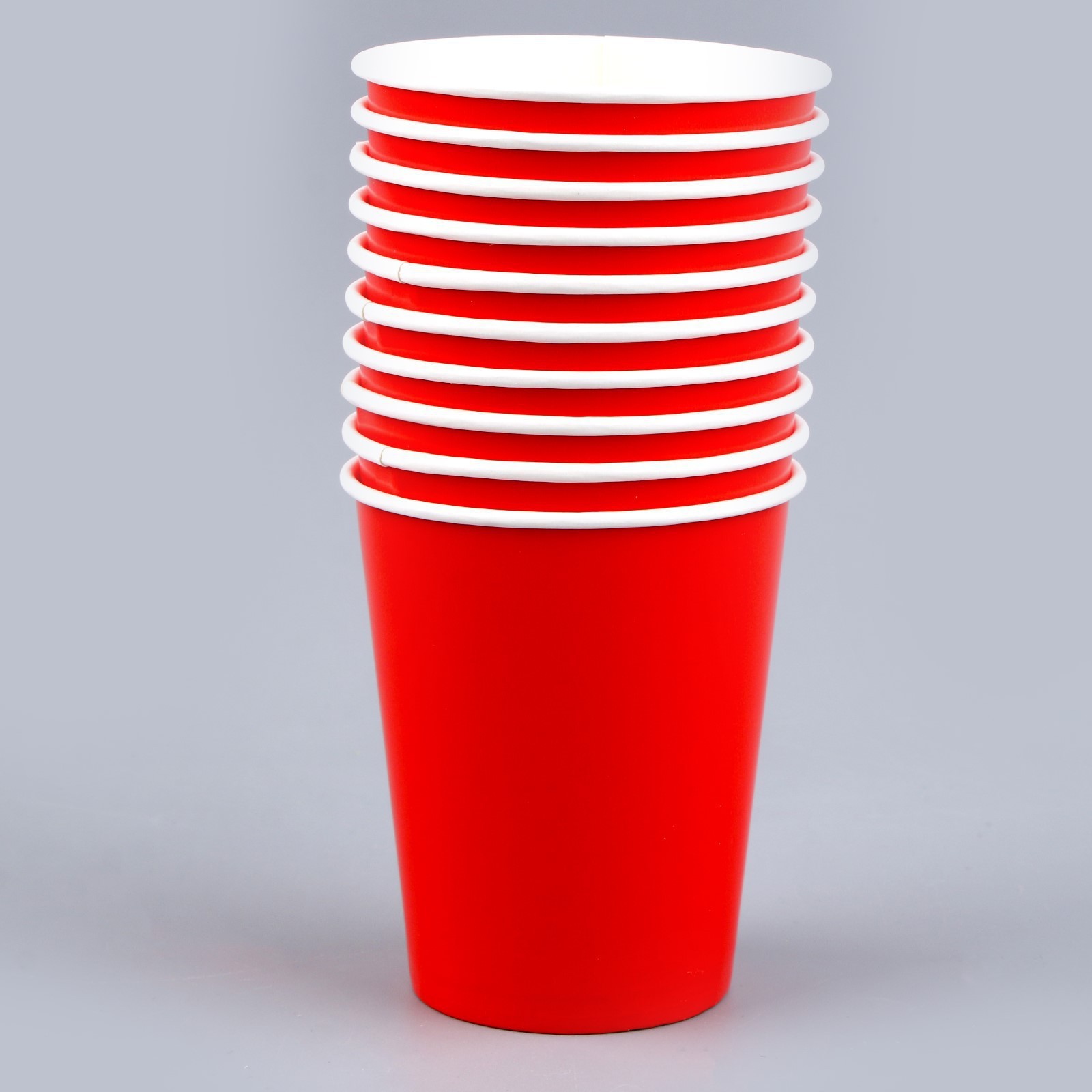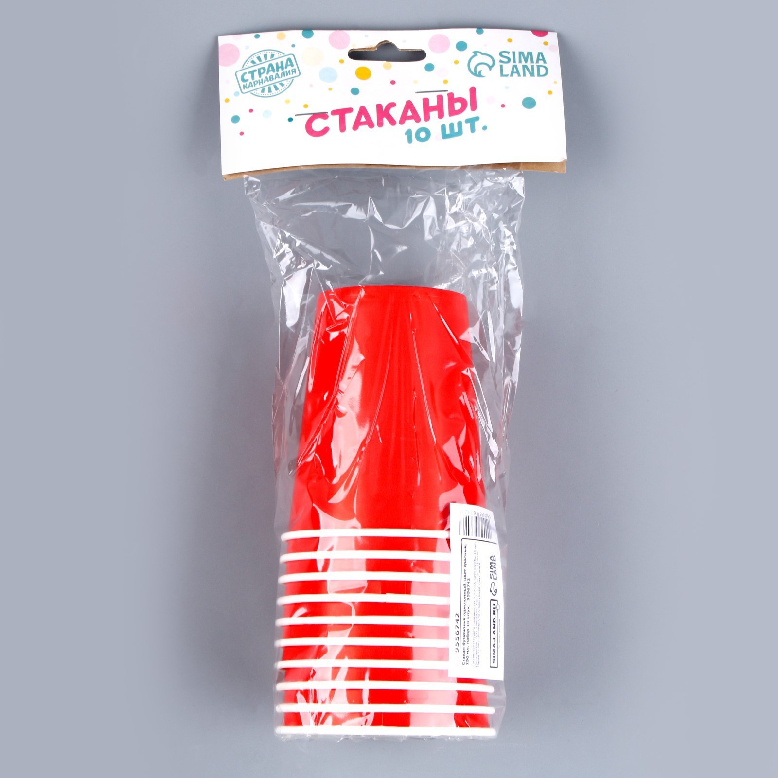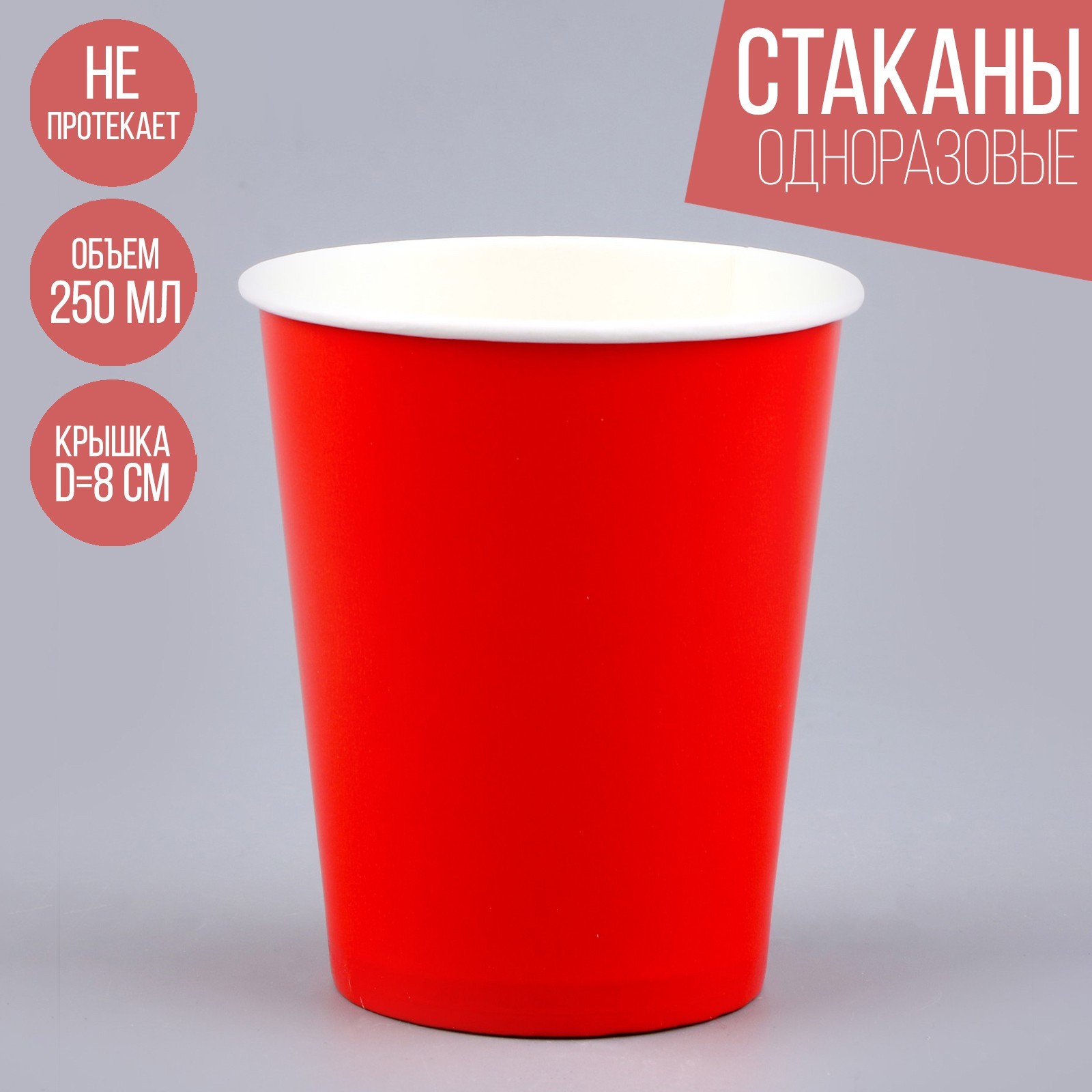 Стакан одноразовый бумажный однотонный, цвет красный, объем 250 мл, набор 10 штук