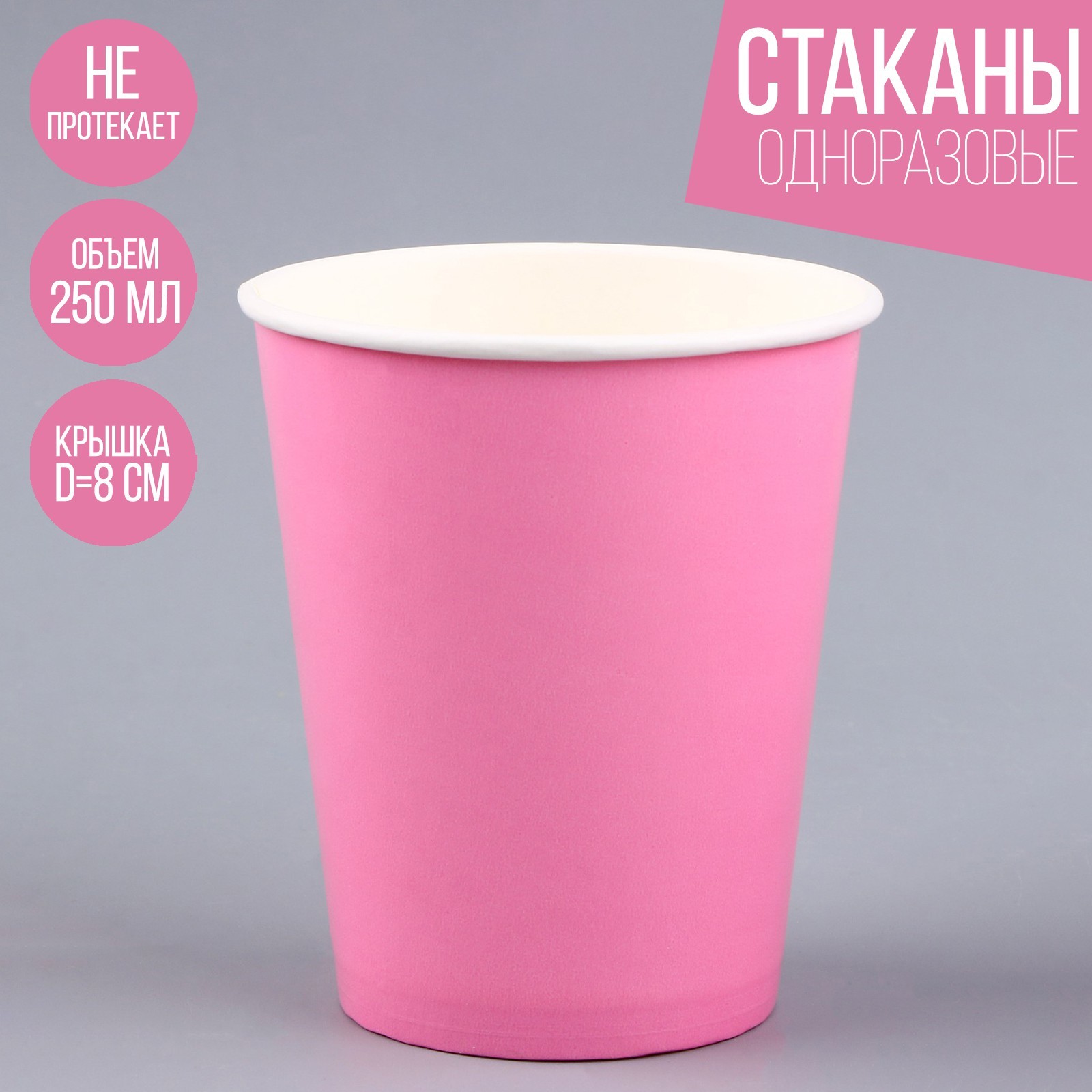 Стакан одноразовый бумажный однотонный, цвет розовый, объем 250 мл, набор 10 штук