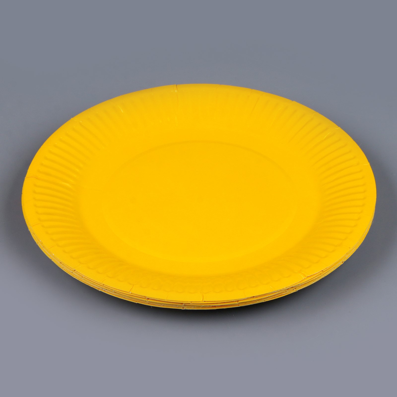 Тарелка одноразовая бумажная однотонная, желтый цвет 18 см, набор 10 штук