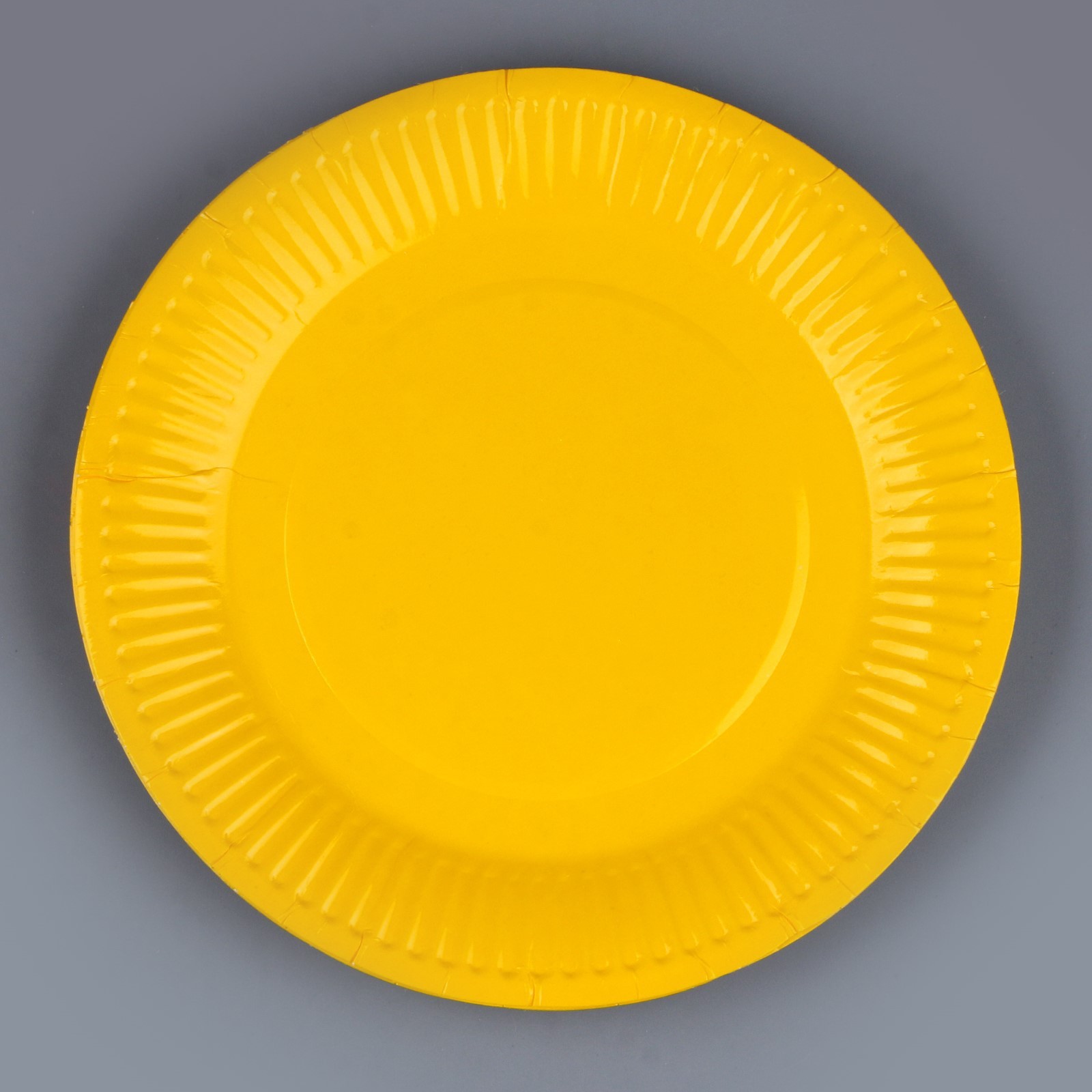 Тарелка одноразовая бумажная однотонная, желтый цвет 18 см, набор 10 штук.