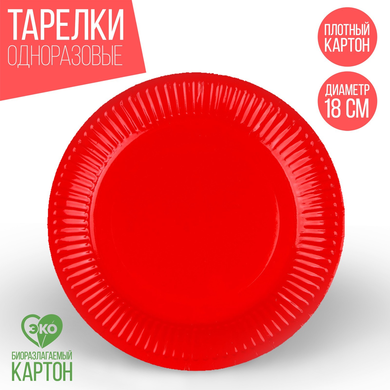 Тарелка одноразовая бумажная однотонная, красный цвет 18 см, набор 10 штук