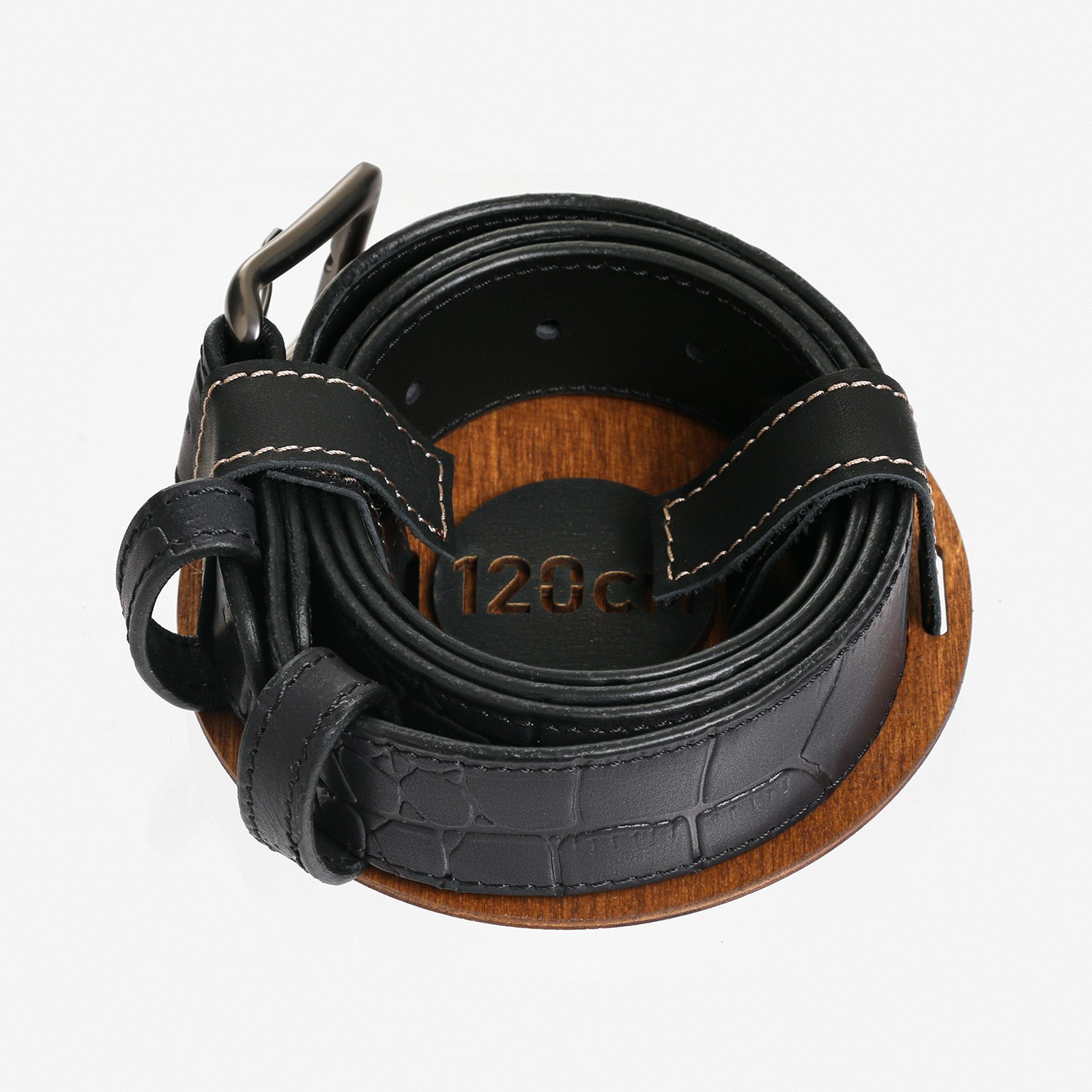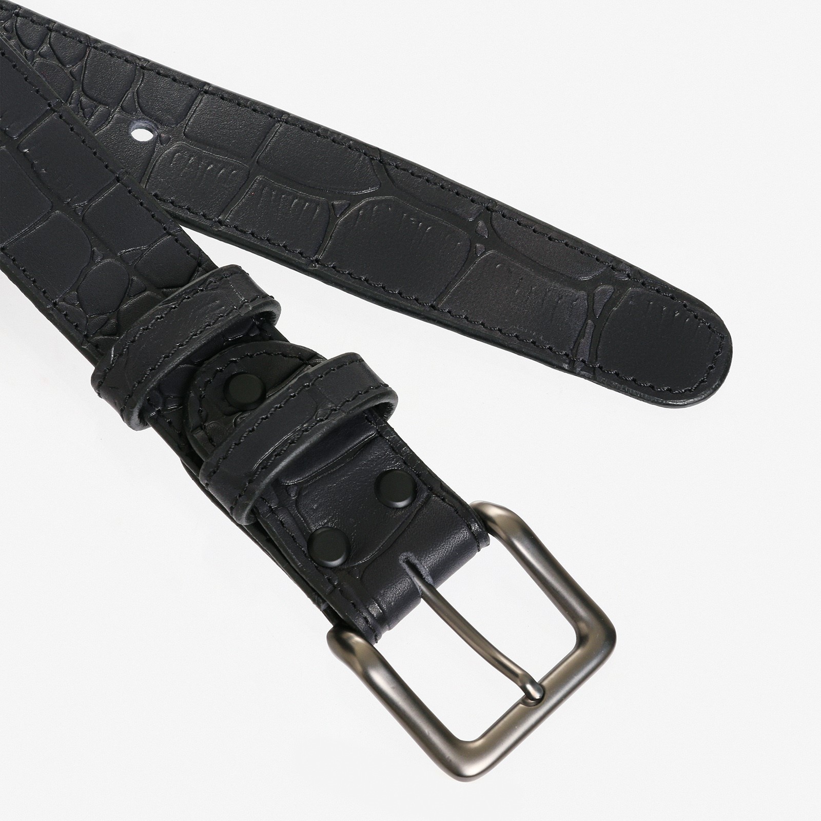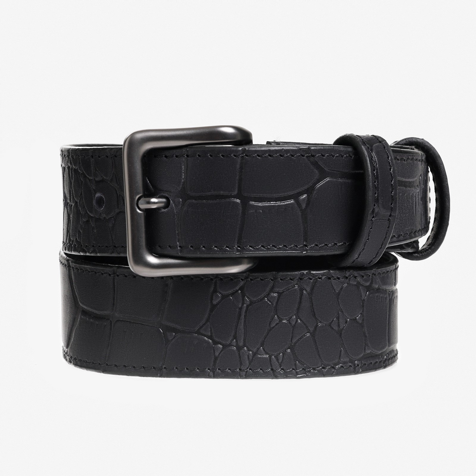 Ремень брючный с подкладом.тиснение имитация кожи каймана, цвет черный, 4 см, 120 см