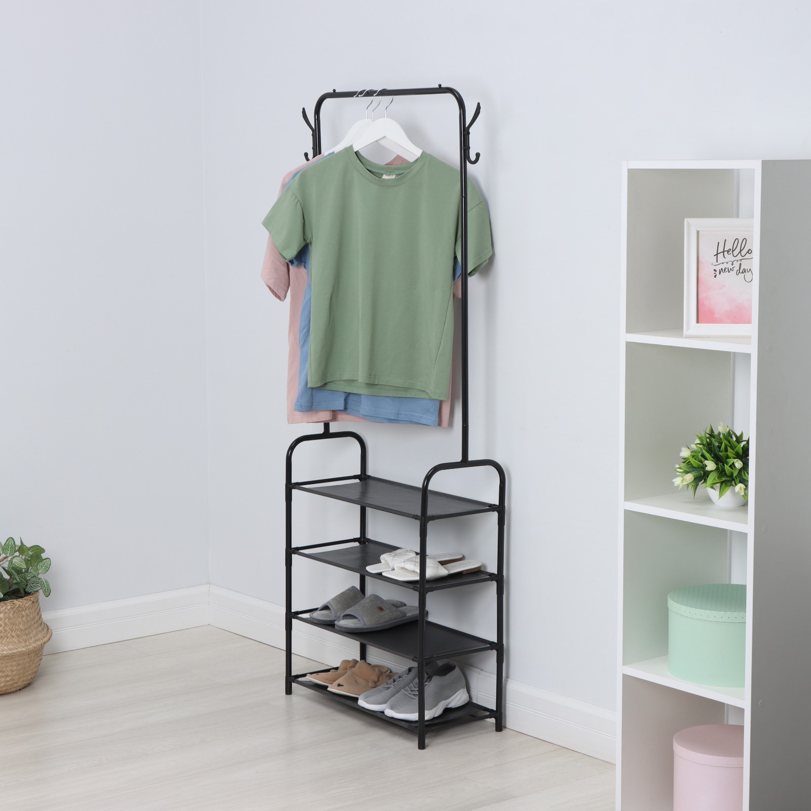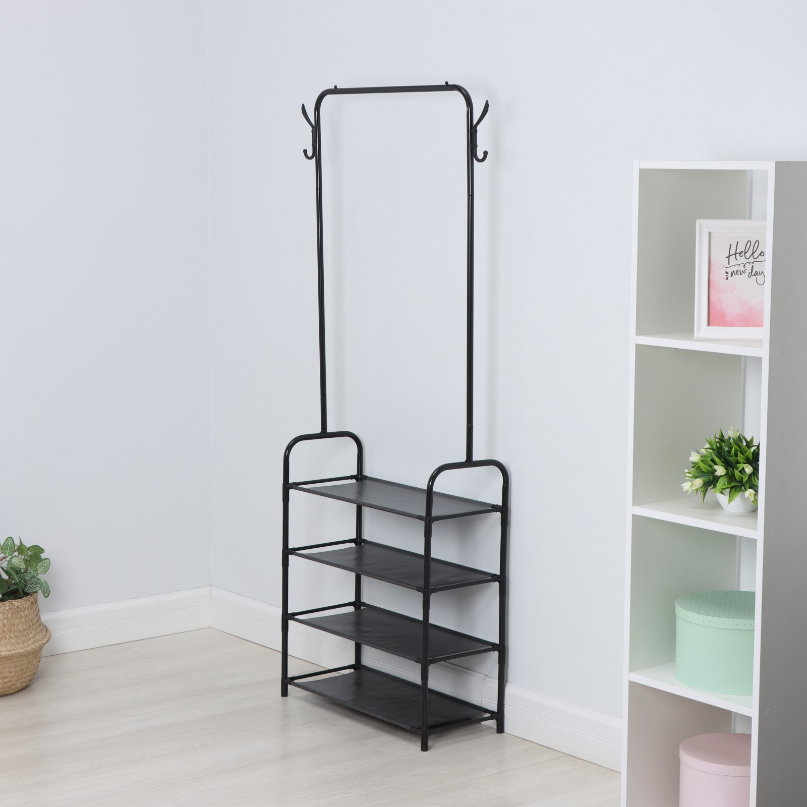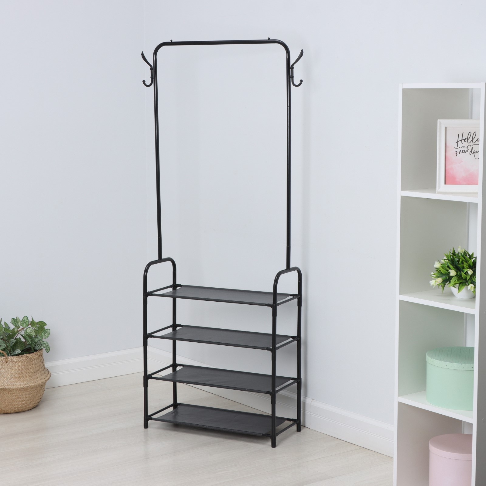 Array. Хотите как можно рациональнее и со вкусом использовать пространство в квартире. Отличным решением станет стойка для одежды. Перекладина имеет большую рабочую площадь и крепкое устойчивое основание. Преимущества: Готово к эксплуатации сразу после покупки и не требует дополнительных затрат. Является самостоятельным элементом интерьера. Очень мобильно. Отличается привлекательной ценой. Одежда быстрее сохнет и проветривается. Цвет: Чёрный Ширина, мм: 600 Глубина, мм: 26 Высота, см: 160 Высота, мм: 160 Количество полок: 4 Количество крючков: 4 На колёсиках: Нет Цвет: Чёрный Материал: Металл Вид установки: Напольный С полочкой: Да Материал основания: Металл Услуга сборки: Нет Поставляется в разобранном виде: Да  развернуть описание ▼