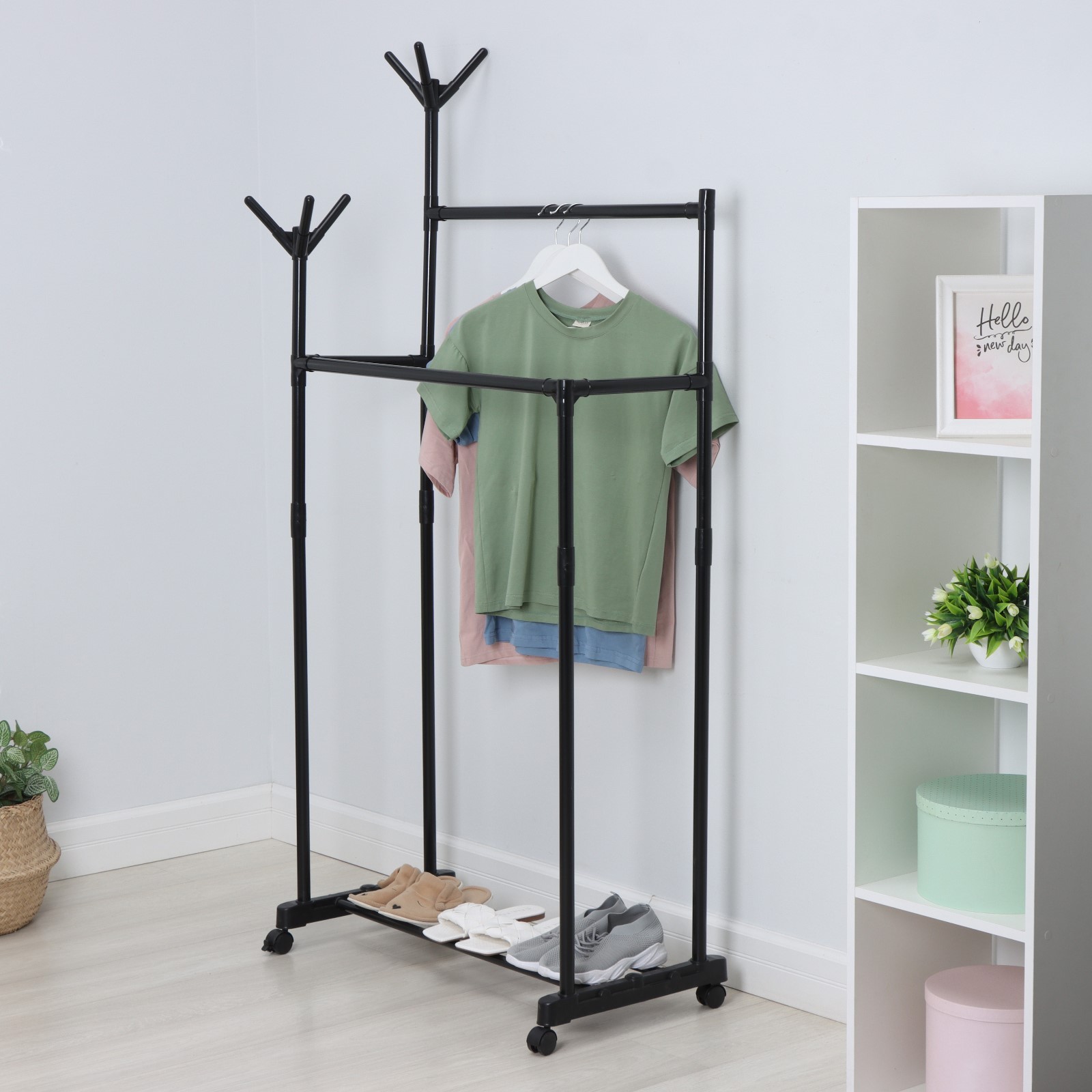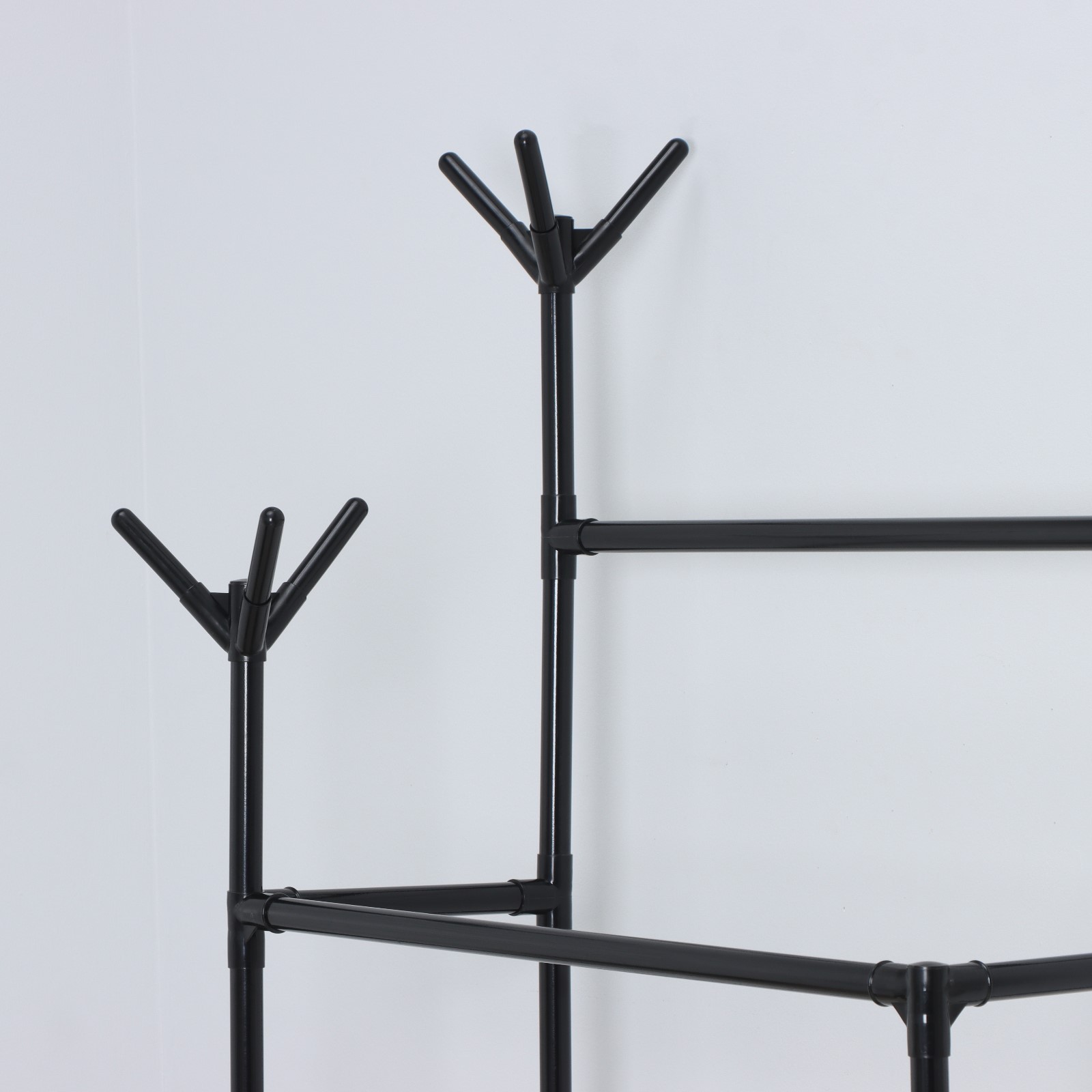 Array. Хотите как можно рациональнее и со вкусом использовать пространство в квартире. Отличным решением станет стойка для одежды. Перекладина имеет большую рабочую площадь и крепкое устойчивое основание. Преимущества: - Готово к эксплуатации сразу после покупки. Не требует дополнительных затрат. - Регулируется высота вешалки. На колесиках, легко передвигается - Лёгкая и быстрая сборка. Не требуется использование инструментов. - Вместительная. На боковых перекладинах можно разместить шляпы, сумки. Есть нижняя полка для обуви, коробок. - Отличается привлекательной ценой. - Многофункциональная. Можно использовать как сушилку, стойку для отпаривания. - Минималистичный дизайн, впишется в любой интерьер. Подойдет для спальни, прихожей, студии. Цвет: Чёрный Ширина, мм: 800 Глубина, мм: 42 Высота, см: 156 Высота, мм: 156 Количество полок: 1 Количество крючков: 6 На колёсиках: Нет Цвет: Чёрный Материал: Металл Вид установки: Напольный С полочкой: Да Материал основания: Металл Услуга сборки: Нет Поставляется в разобранном виде: Да  развернуть описание ▼