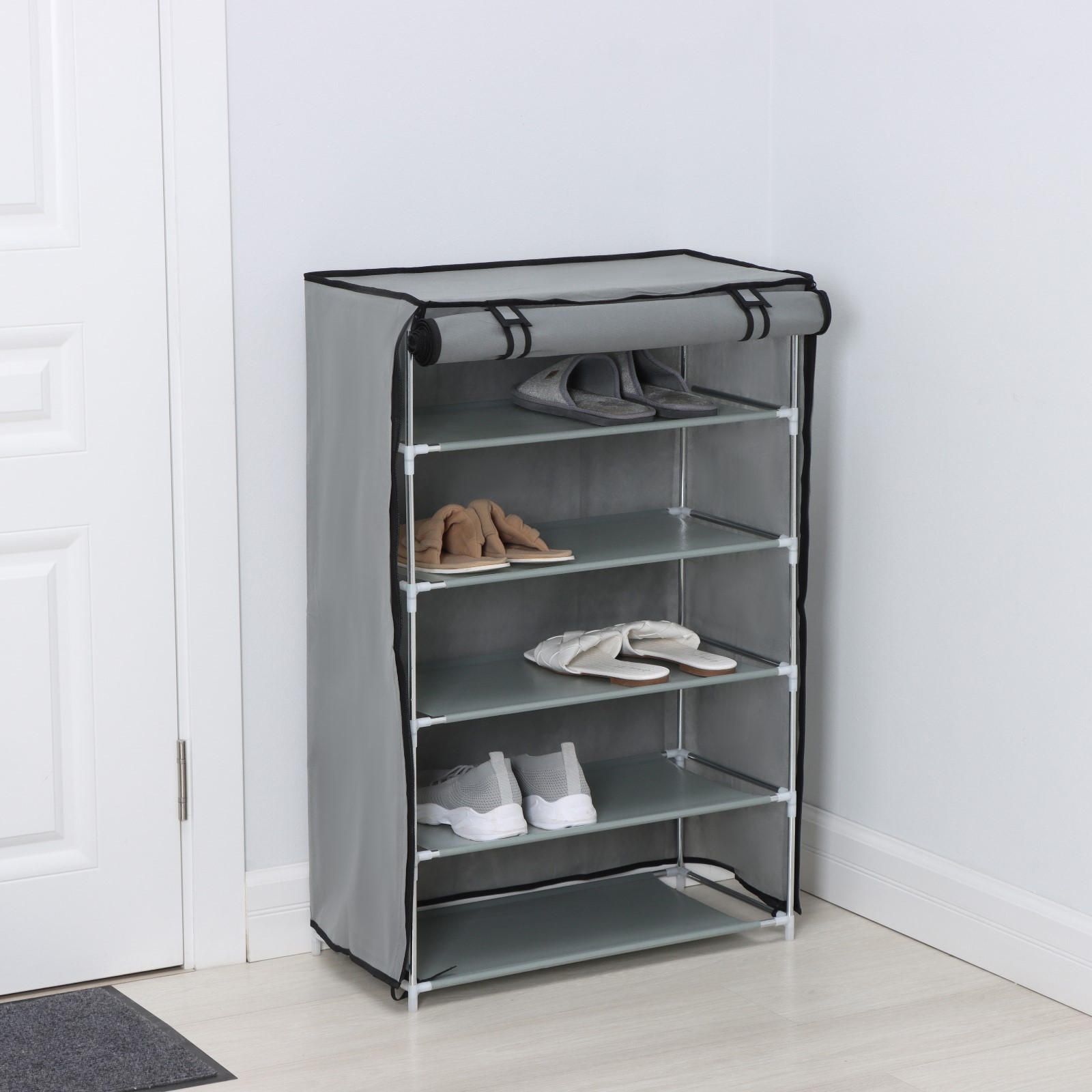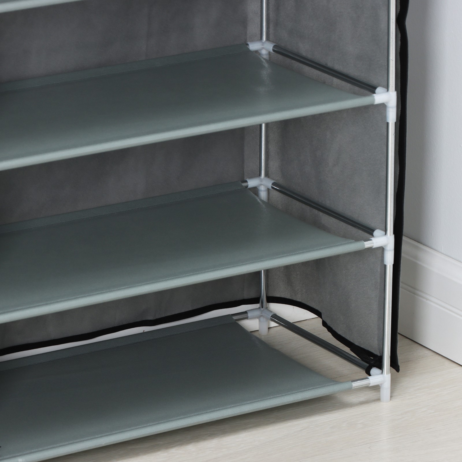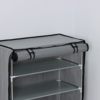 Array. Полка с чехлом — это компактное и практичное решение для хранения. Чехол защищает обувь от пыли, грязи и влаги, обеспечивая лёгкий и простой уход. Преимущества: - Стальной каркас, утолщённые трубки; - Пластиковые соединители премиум-класса, безопасные для детей скругленные углы; - Лёгкий вес, удобно перещать; - Простая сборка без лишних инструментов; - Прочный непромокаемый нетканый материал; - Экономия места на даче, в квартире, в офисе; - Подойдет для хранения обуви, книг, рассады. Цвет: Серый Ширина, мм: 600 Глубина, мм: 30 Высота, мм: 90 Количество секций: 5 Количество полок: 5 На колёсиках: Нет Материал корпуса: Текстиль Цвет: Серый Материал: Текстиль Вид установки: Напольный Материал основания: Металл Услуга сборки: Нет Поставляется в разобранном виде: Да  развернуть описание ▼