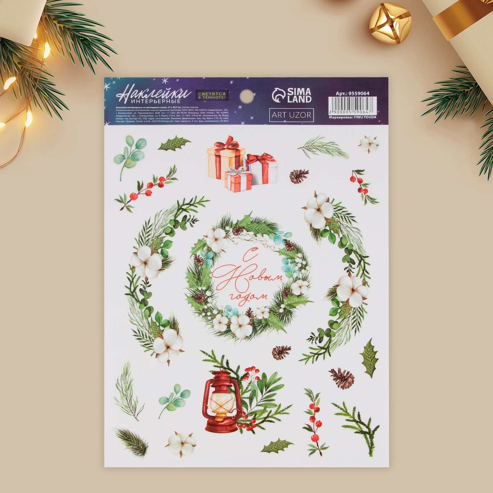 Наклейки новогодние, интерьерные со светящимся слоем «с новым годом», 21 х 29.5 см. Набор:Нет|Тематика:Новогодняя|Символ года:Нет|Тематика праздника:Новый год|Материал:Пластик|Многоразовые:Нет|Вид наклейки:Светящаяся в темноте|Вид наклейки:Интерьерная|Наклейка двухсторонняя:Нет|Страна:Китай  развернуть описание ▼