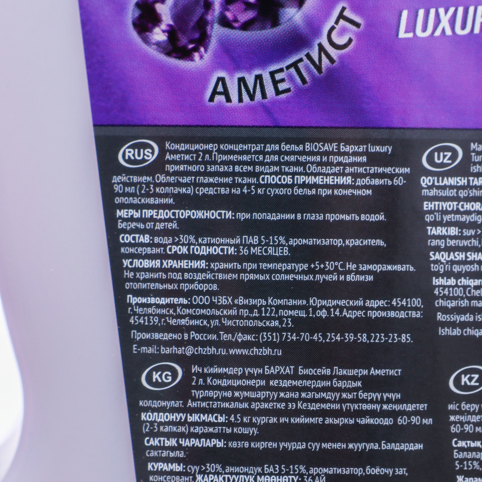 Кондиционер для белья Biosave бархат Luxury "аметист", концентрат, 2 л