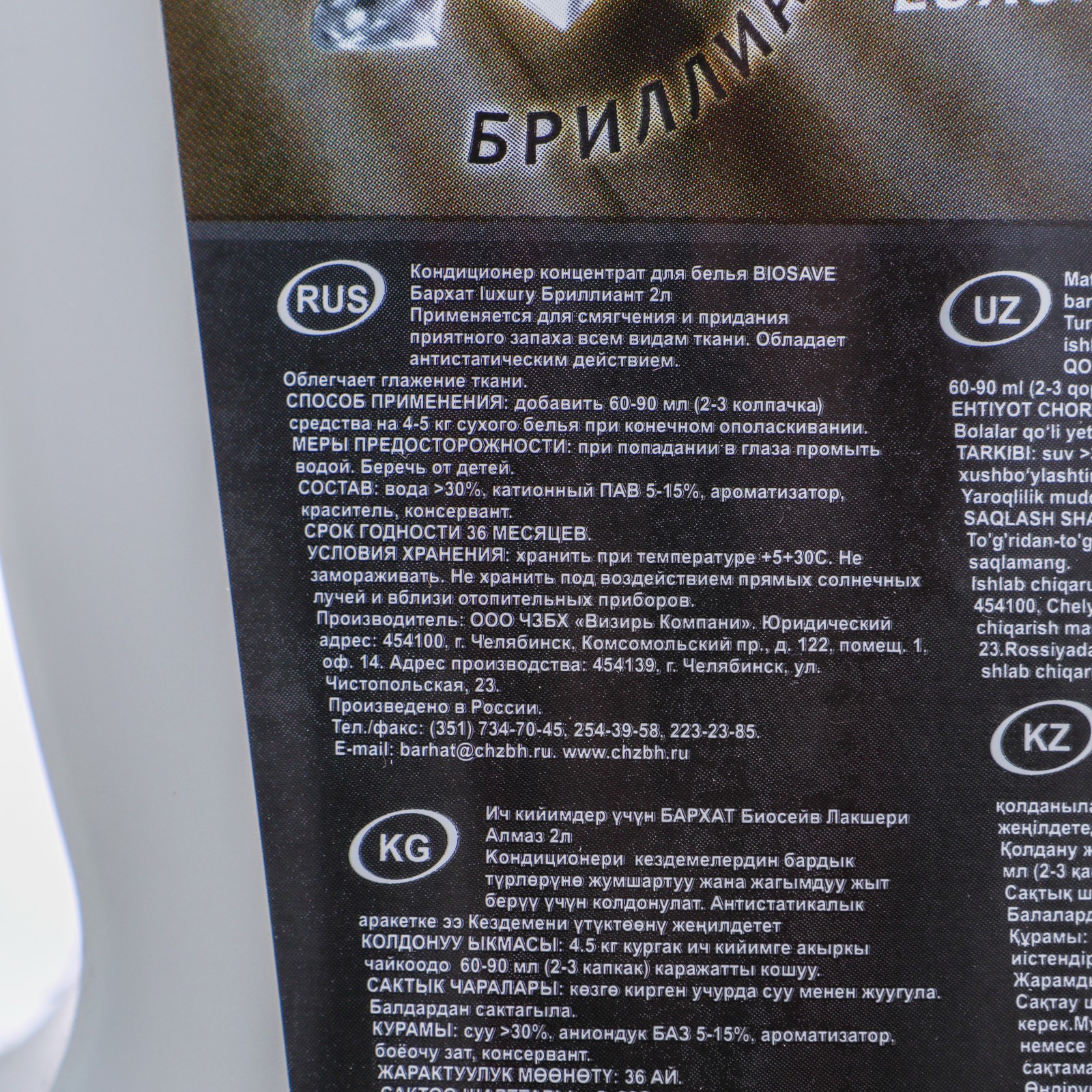 Кондиционер для белья biosave бархат luxury "бриллиант", концентрат, 2 л.